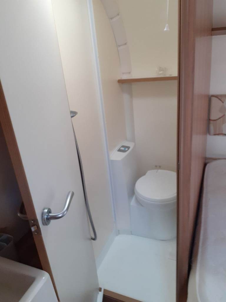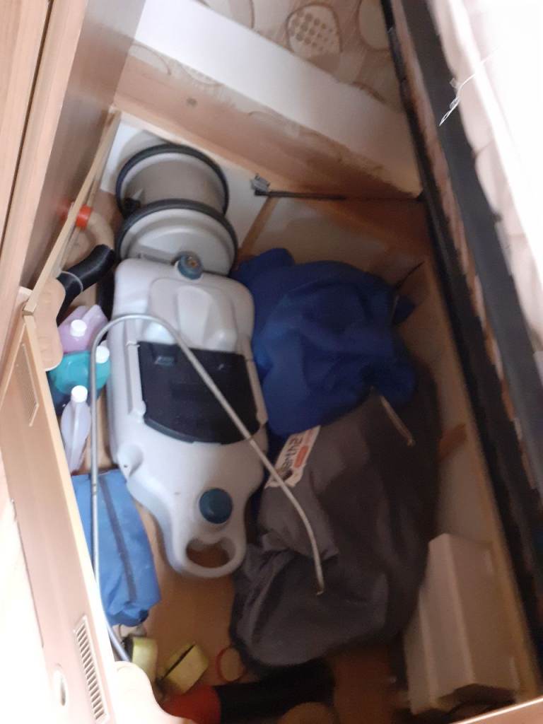Plenty storage with overhead lockers, wardrobe and under seats and double bed.