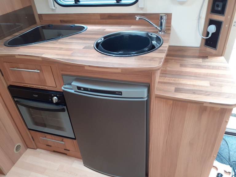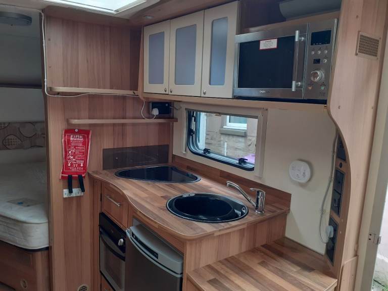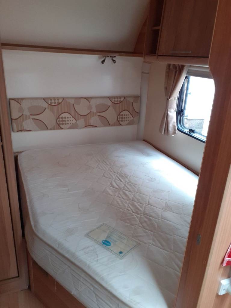 6 berth single axle lightweight caravan with fixed double bed.