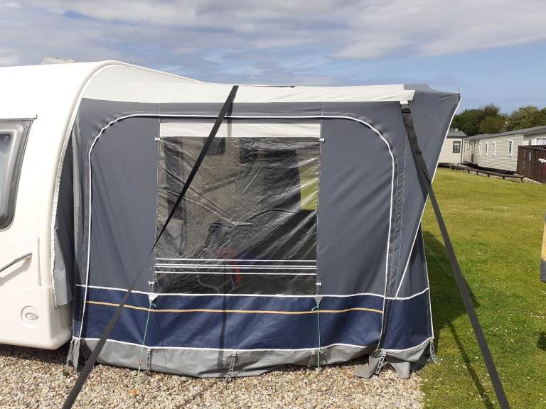 Comes with full dorema awning, including pegs ( no curtains), ground sheet, awning side skirt and wheel arch cover.