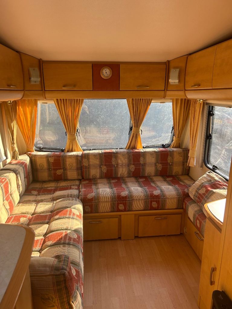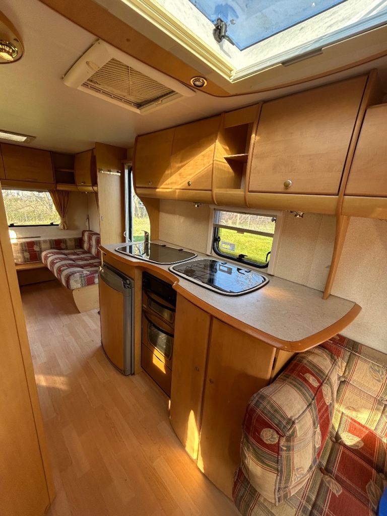 Comes equipped with cooker oven and grill with extractor fan 3 way fridge freezer fire with blow air central heating hot and cold running water spacious cassette toilet and shower extras include 2 gas bottles leisure battery spare tyre hookup cable wheel lock alko tow hitch hekki skylight