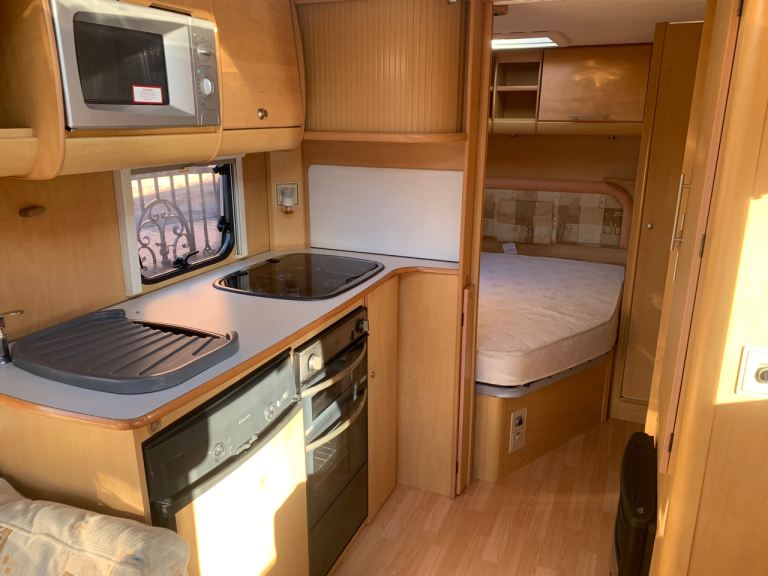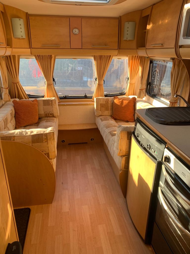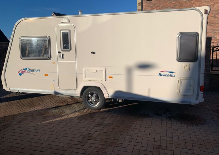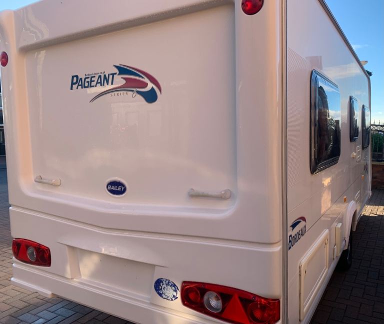 Bailey Pageant Bordeaux 4 berth,fixed bed, 2008 Caravan, excellent condition inside and out, very spacious Caravan with bedroom toilet and shower area that completely close’s off from the rest of the Caravan for privacy , bed has underneath storage, wash basin and vanity area , kitchen has sink and work top and 4 hob cooker oven and grill, microwave, 3 way fridge freezer, Caravan heating is gas and electric blow central heating system, cassette toilet with shower and wash basin, it has a large sunroof , CD Stereo system, it has multiple sleeping arrangements including double beds, king size bed, single beds and fixed bed,Includes electric cable,waste and water containers ,door step £5,250