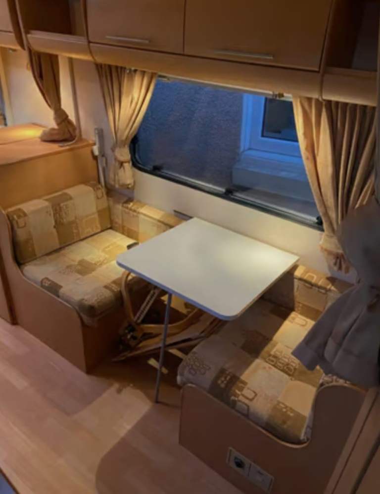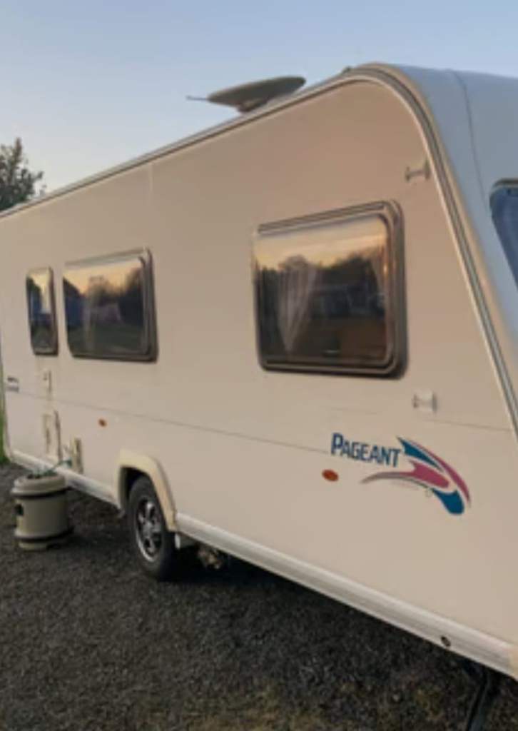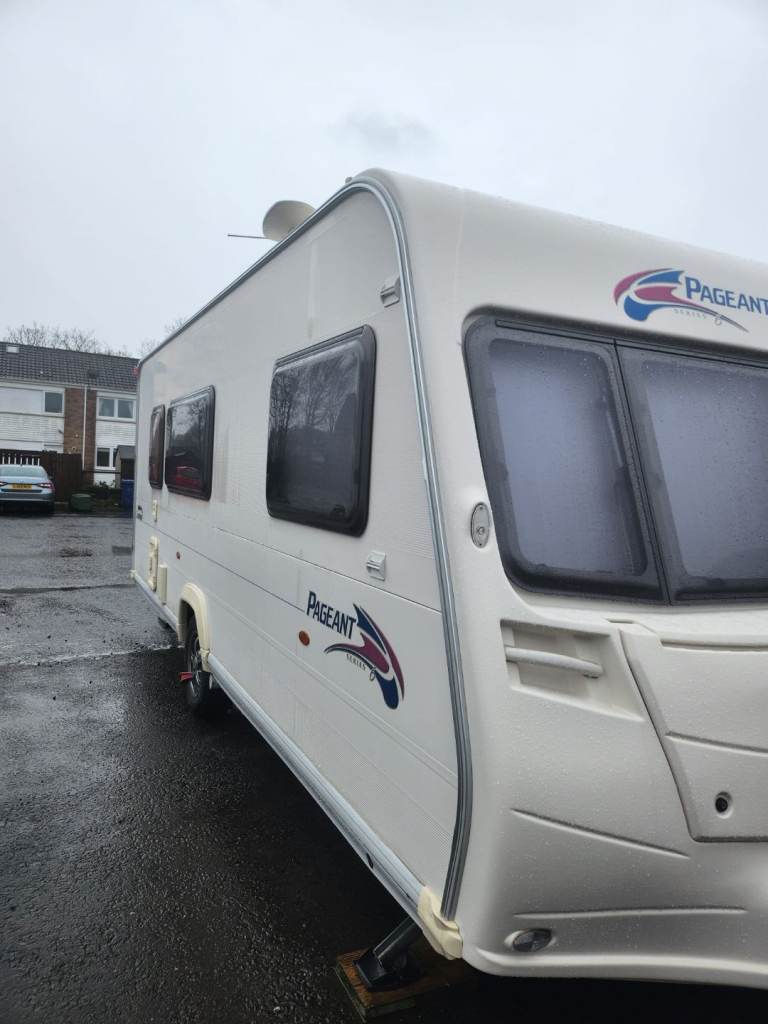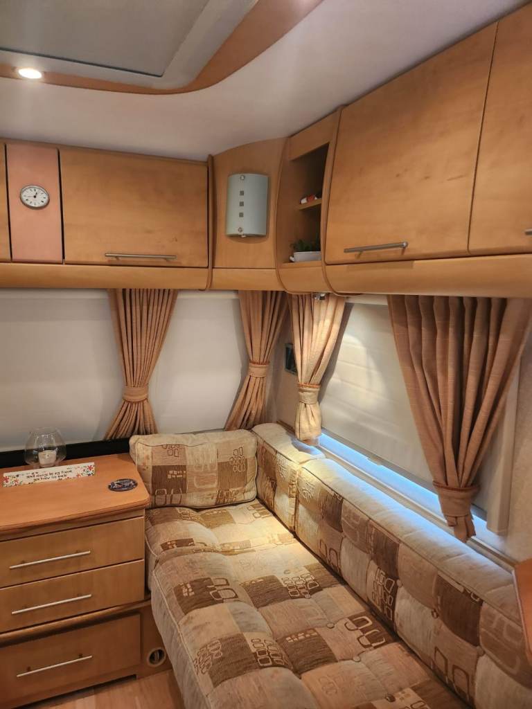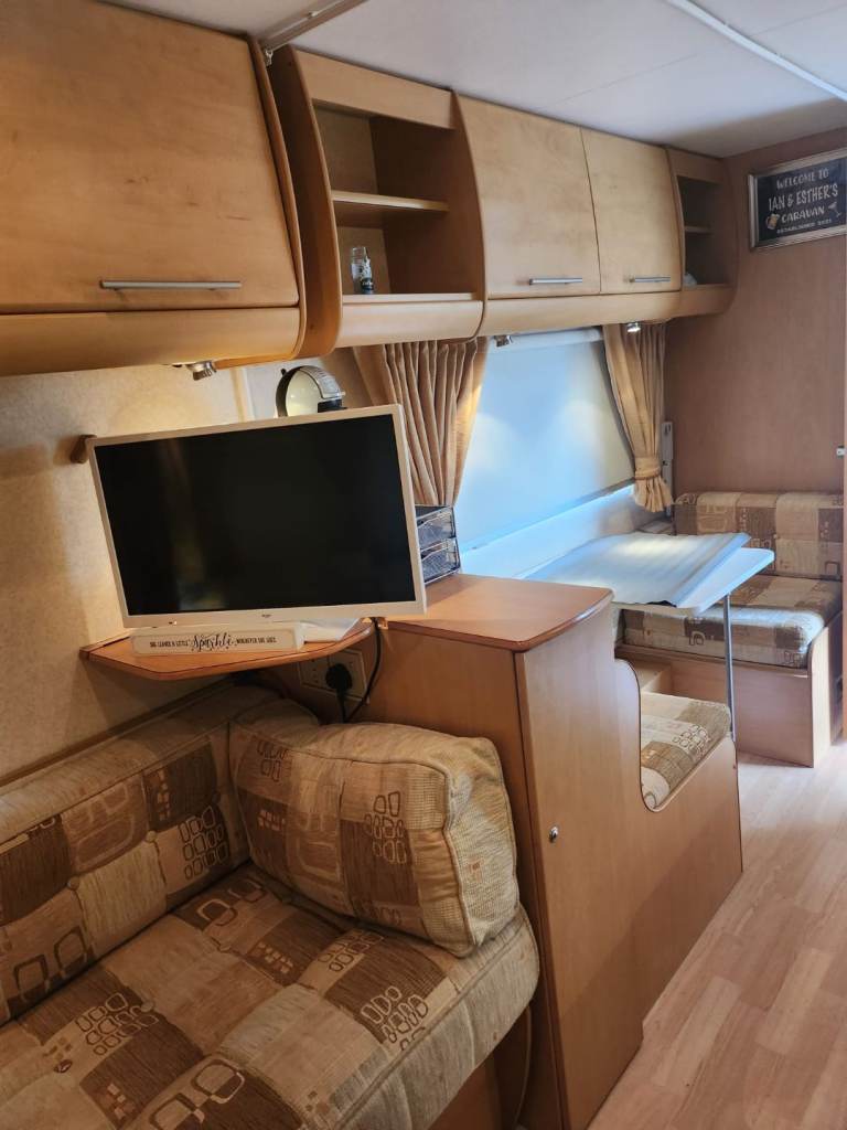 Comes with awning all water bouts TV, stereo,ground sheets, carpets for awning, draught skirts, wheel clamps, steps awning lights, ground pegs, 3x full gas bottles,water pumps,all water lines drainage hoses water float for direct connection to water sources everything can be seen working gas cooker and heating system in good working order new leisure battery just put in.