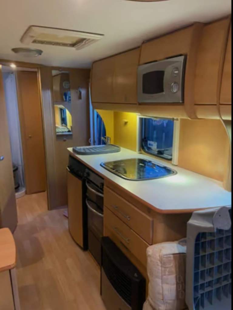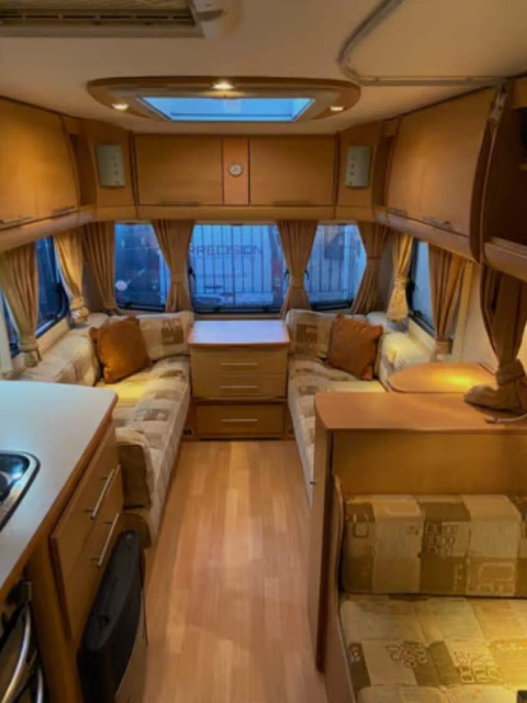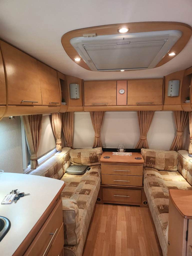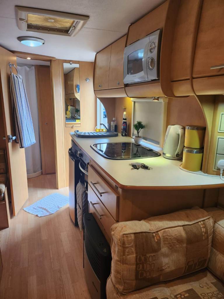 Comes with awning all water bouts TV, stereo,ground sheets, carpets for awning, draught skirts, wheel clamps, steps awning lights, ground pegs, 3x full gas bottles,water pumps,all water lines drainage hoses water float for direct connection to water sources everything can be seen working gas cooker and heating system in good working order new leisure battery just put in.