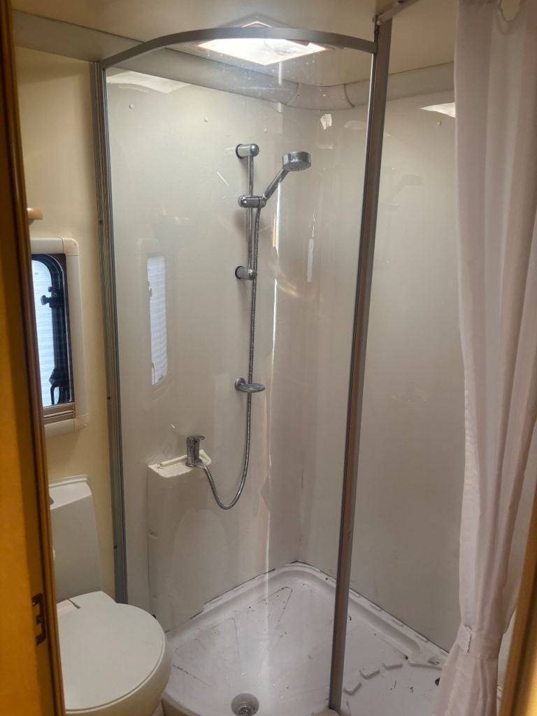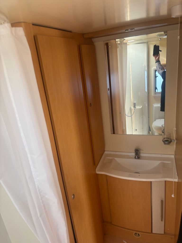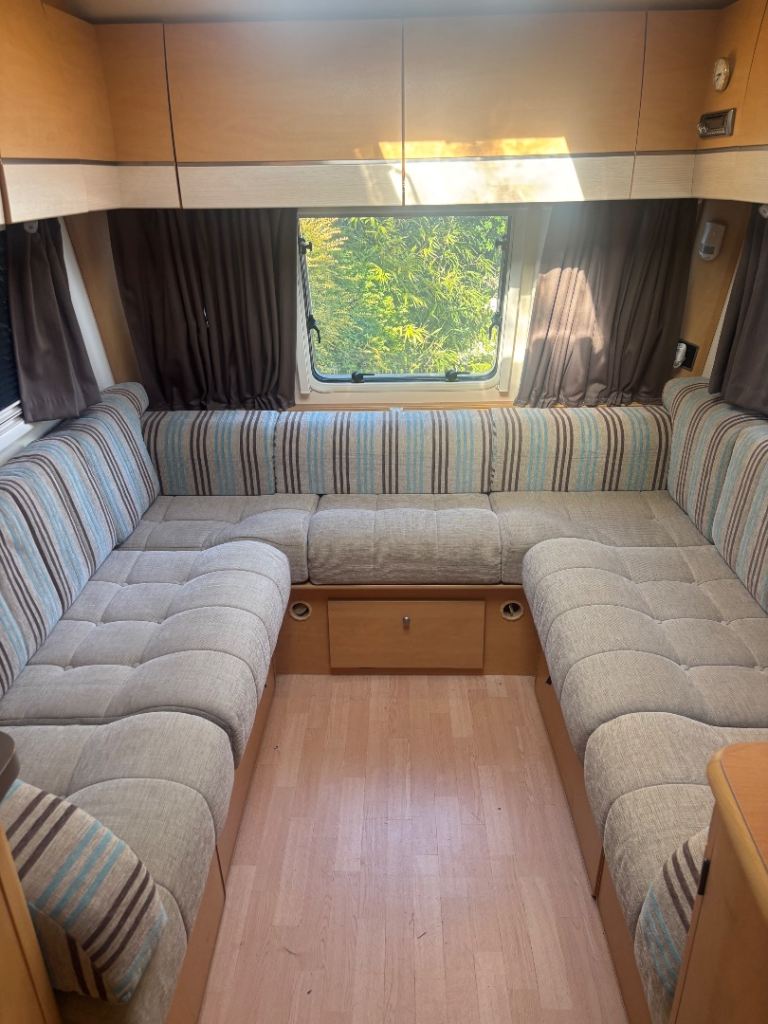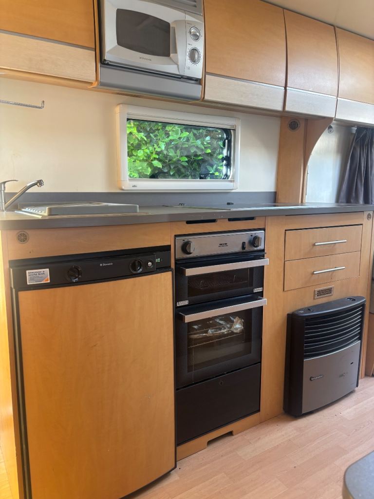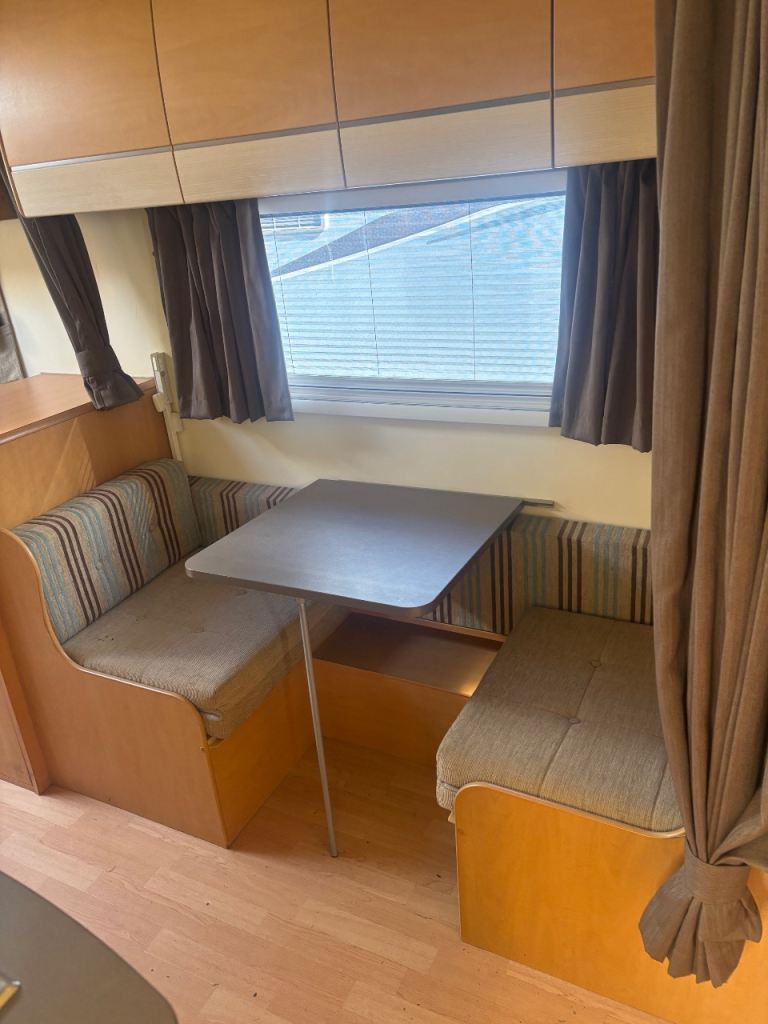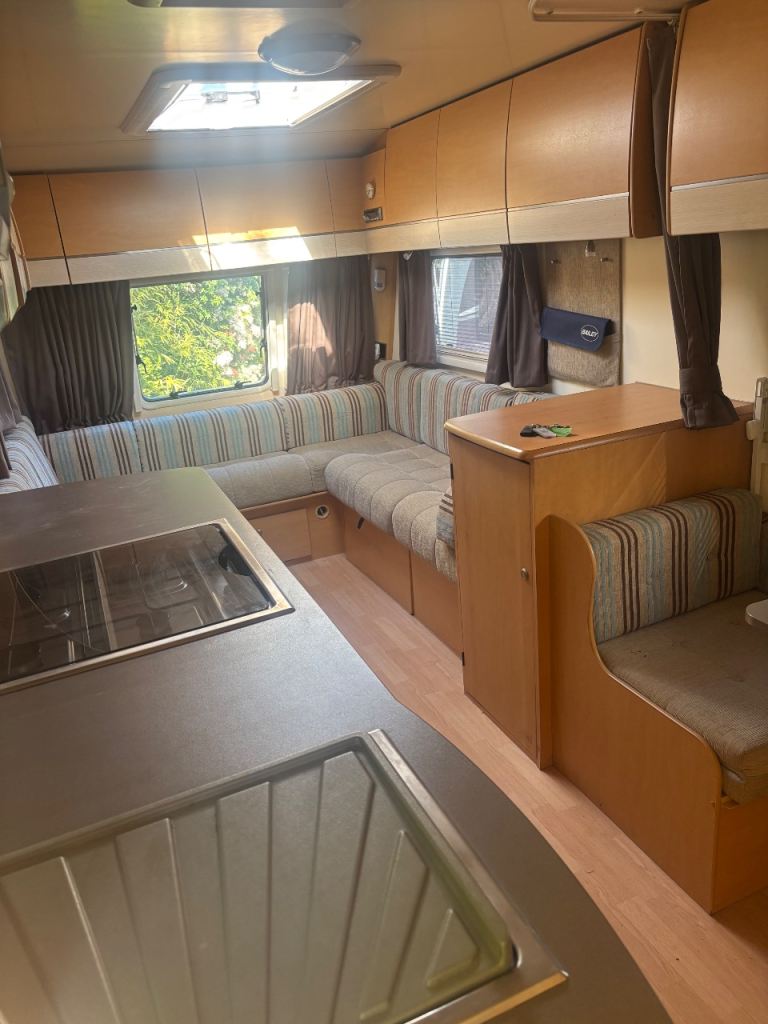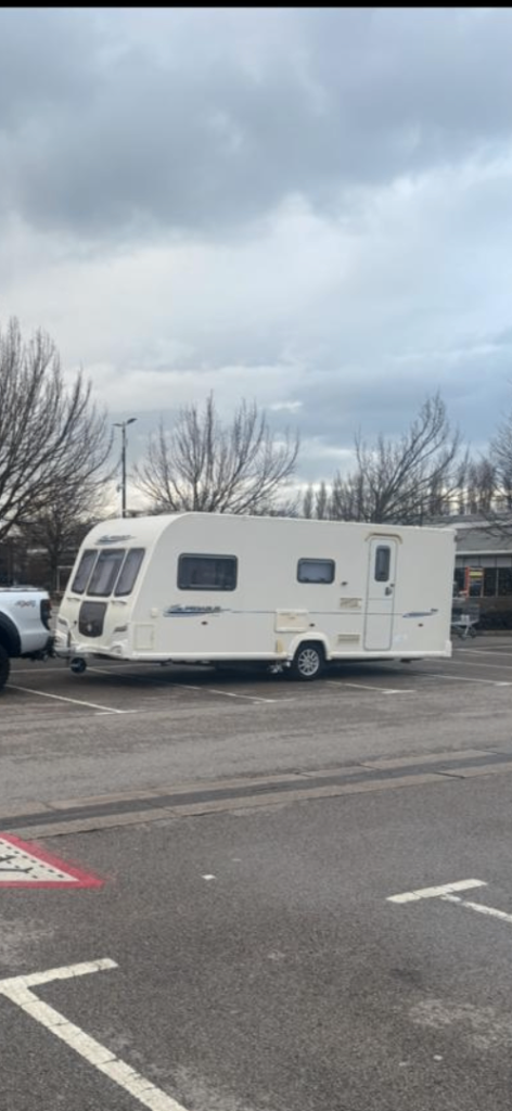 Great 4 berth caravan Iv had this for 5 years only selling as Iv upgraded my van, lots of service history just had a full 30th April 2026 service/habitation check done all paperwork and receipts, lots of service history, motor mover, full wrap around seating 8ft wide spacious van turns into a queen size bed and has x2 bunk beds massive end caravan bathroom toilet, vanity unit/sink 6ft wardrobe, huge double shower not like tiny caravan showers you normally see this a big selling point on the caravan, loads of storage space, truma blow air heating all working on electric or gas, microwave, gas hob, gas oven, fridge freezer, all water bowsers and water hook up and electric cables caravan steps it’s literally ready to go LCD tv and stand kettle, toaster, spare plush cream carpets bought as an extra, on board extra water tank so you never run out of water! It’s still a tidy van and loads of life left in it yet, great time to buy in time for summer, all hitch locks, wheel clamps, x2 gas bottles, new leisure battery fitted, too much to list!! 1st to see will buy! I will show you it all working so you know exactly what your buying!! Water heating and gas will be tested infront of you! Nothing hidden here!! Few age related marks/cracks but doesn’t effect the structure of the van Will take no less than £4500 as these online at £5500