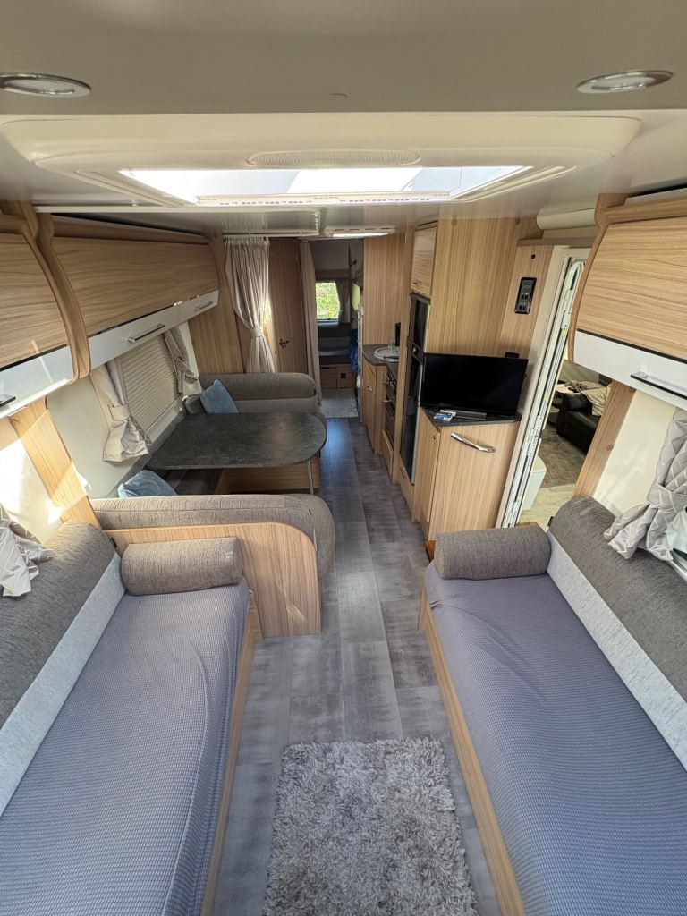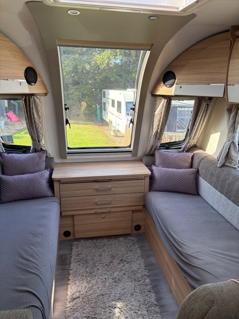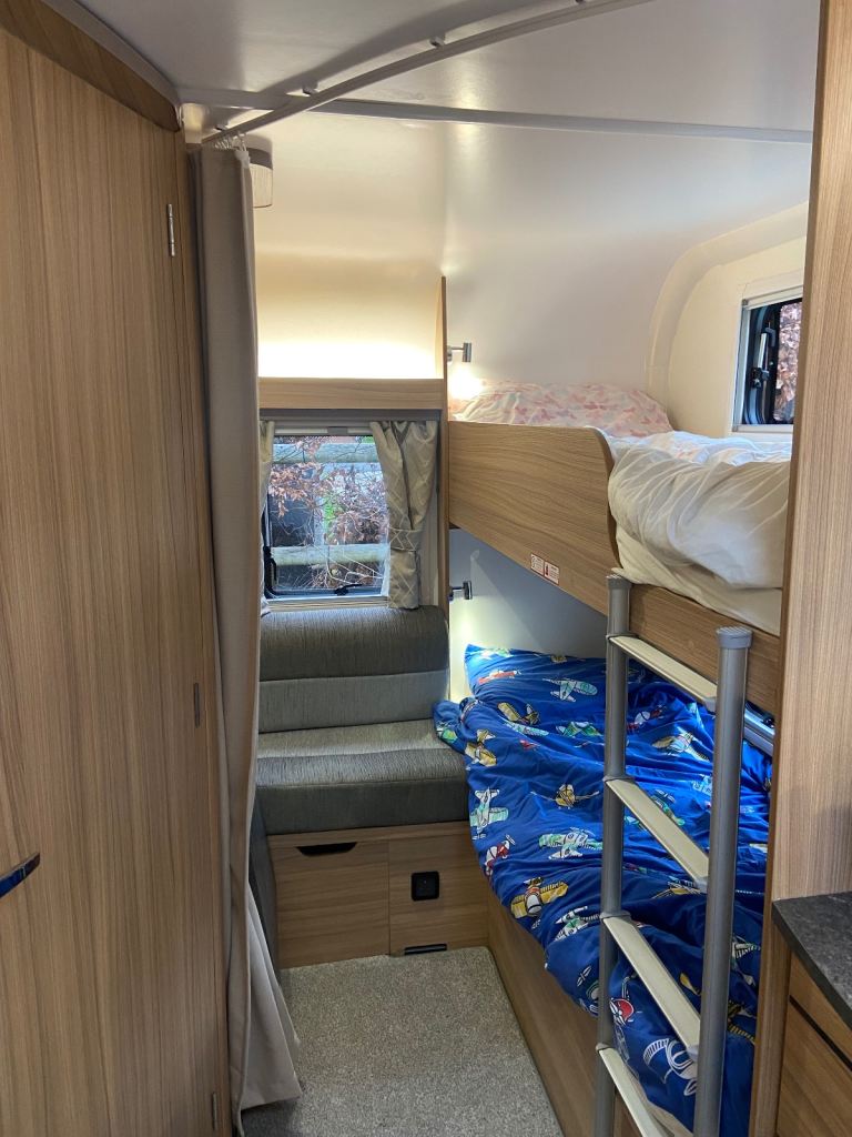 We bought this van from new and have had it sited on a seasonal pitch since. We have had it serviced every year and it has never been towed so is in excellent condition. It converts to a king size bed at the front, has fixed bunk beds and another double bed when converting the dining table. Please see Bailey website for more details. It has been perfect for our family and we are very sad to be selling it.