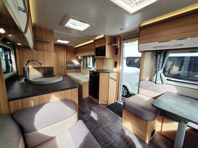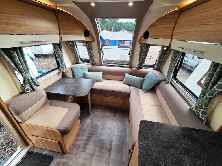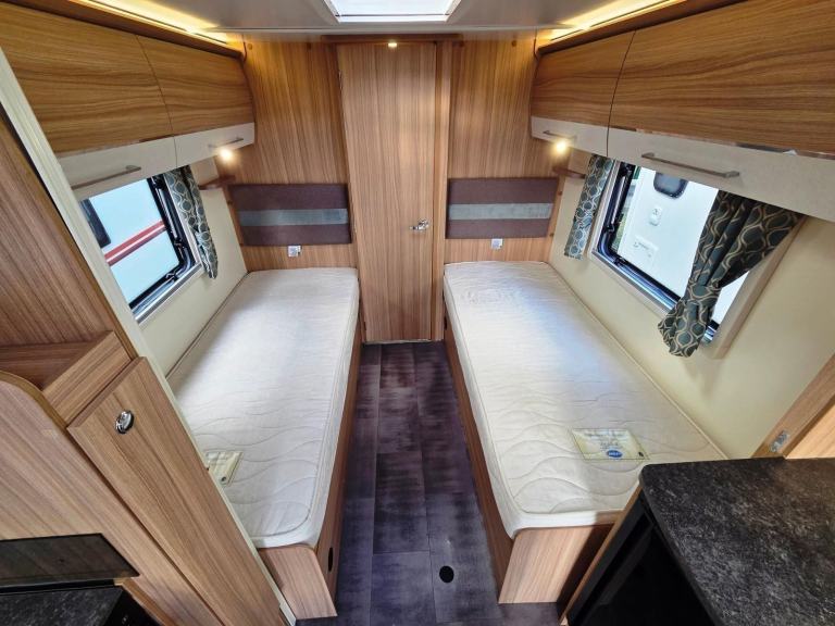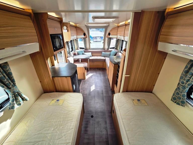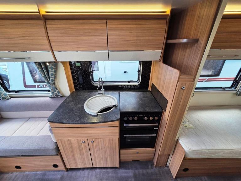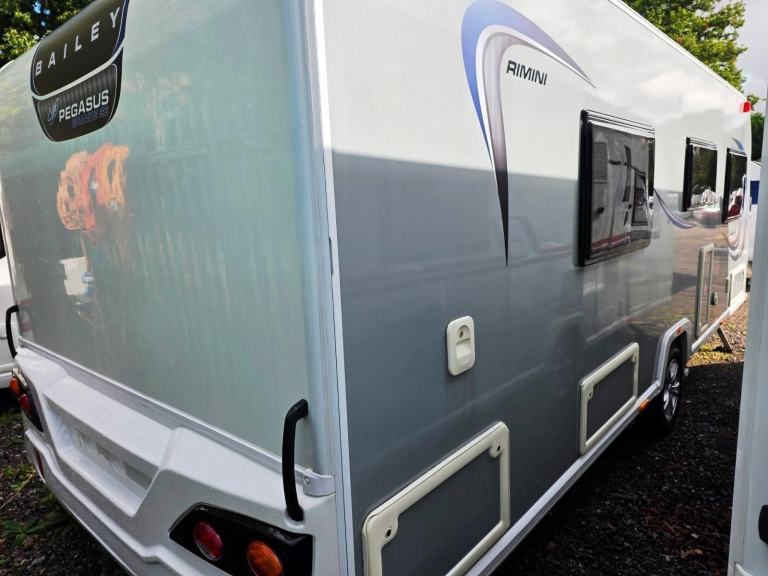 Bailey Pegasus Grande SE Rimini 2021 4 berth fixed single beds touring caravan for sale. 8 ft wide twin axle model for maximum space. One owner model used only a handful of times with many extras. U shape sofa seats with optional side table in the lounge which converts to make large double bed. Centre kitchen with sink, draining area, 3 way fridge freezer, hobs, grill, full oven, microwave, cupboards and draws. Mid rear bedroom with fixed single beds, overhead cupboards and reading lights. Beds lift up to reveal large rear storage areas with external locker doors providing exterior access for loading bulky items. Rear washroom with cassette toilet, separate shower, window, fixtures and cupboards. Specification includes auto engage motormover system, ALKO ATC, ALKO stabiliser hitch, LED internal lighting, alarm system, roof mounted solar panel, Truma Combi boiler with iNet, drop down fitted carpets, Status directional TV aerial, CD/radio, external 240v and BBQ gas points. Extras include aquaroll, wastemaster, hitchlock, hook-up cable, front towing cover, leisure battery, gas bottle and more. All caravans serviced and valeted before collection. Full handover demonstration for buyer. 6 month warranty for peace of mind. Part exchange and finance options available. Many additional photos available. Video viewings available. Spec Includes: 4 BerthSingle AxleFixed Single BedsCentre Kitchen1 Electric Hob3 Gas HobsGrillFull Oven3 Way Fridge FreezerMicrowaveBlindsFlyscreensDoor FlyscreenStatus Directional AerialSunroofsHeki RooflightsPanoramic SunroofCassette ToiletHand WashbasinSeparate ShowerTruma Combi Boiler Heating & Hot Water with iNetMains ElectricBattery ChargerRoof Mounted 100w Solar PanelAuto Engage MotorMoverAlloy WheelsSpare WheelALKO Stabiliser HitchALKO ATCExternal 240v SocketExternal BBQ PointHabitation ManualsService History2 Sets Of KeysWidth: 2.45 mExternal Length: 7.38 mMIRO: 1401 kgMTPLM: 1556 kgCRIS Registered Part exchange welcome. Finance available subject to status. Extended warranties available on most vehicles. Please note, this vehicle is not a brokerage unit and as such means that it is compliant with the Consumer Rights Act 2015.