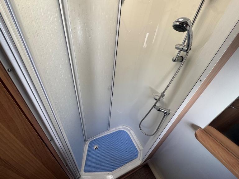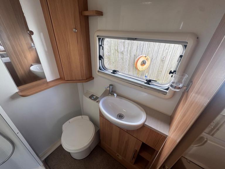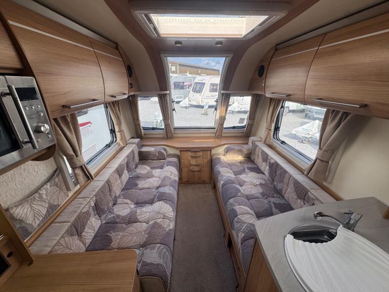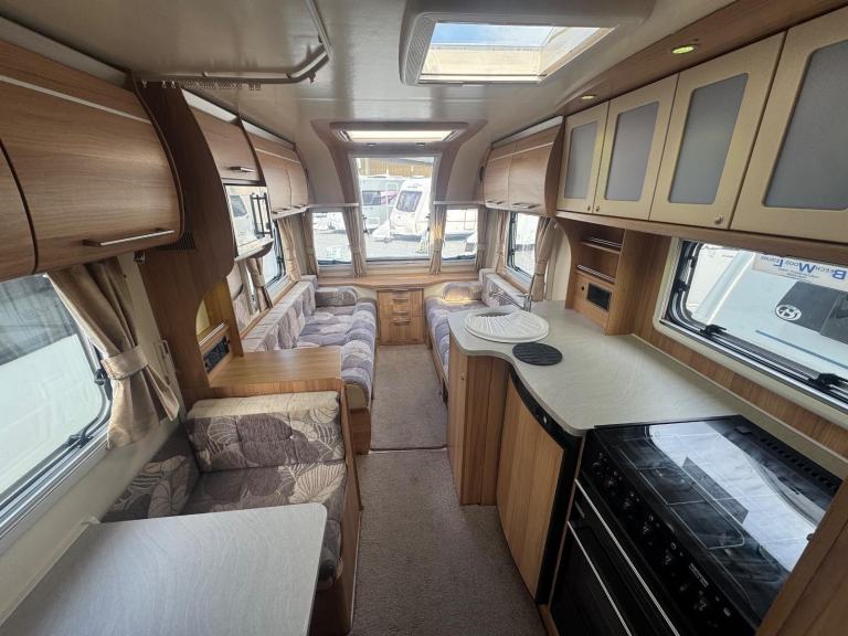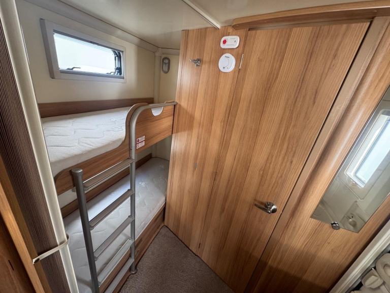 Rear nearside dressing room including separate shower enclosure, vanity unit and toilet - 2 x rear offside fixed bunks - offside dinette with retractable bunk - nearside double wardrobe - central nearside dresser - central offside kitchen - 2 x singles / double at the front - an impeccable example of this fantastic family model - benefitting from one of the best family layouts available as well as a comparatively light towing weight - in excellent condition both inside and out