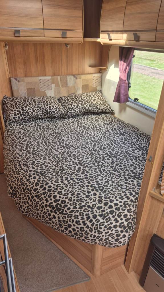 Fixed double bed, toilet/washroom at rear.