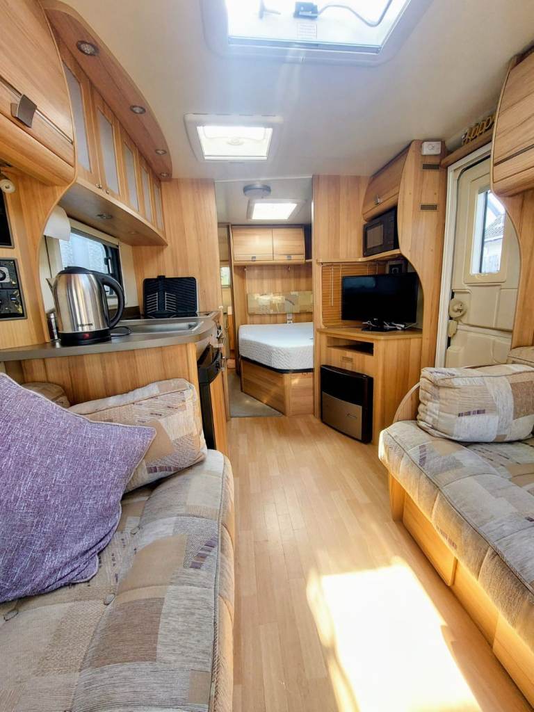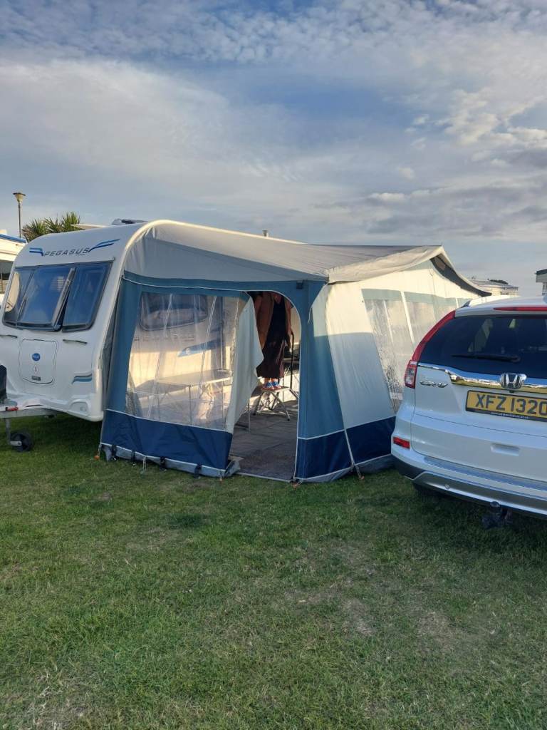 2012 4 berth caravan excellent condition for sale. Two awnings one canvas full size, one air awning 3/4 size. Groundsheets. Furniture Inc blow up settee. All included.