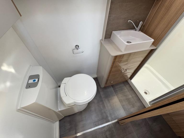Full rear dressing room incorporating separate shower cubicle, toilet and vanity unit -transverse fixed island bed with adjoining wardrobes - central offside kitchen - 2 x singles / double at the front - UNMARKED THROUGHOUT this tourer has had minimal use and represents a HUGE SAVING ON THE EQUIVALENT COST NEW !