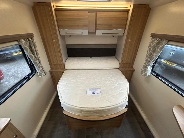 Full rear bedroom incorporating a central island bed and adjoining wardrobes - central dressing room featuring a separate shower cubicle, toilet and vanity unit - central offside kitchen - 2 x singles / double / dining area at the front - comparatively lightweight and HARDLY EVER USED this model offers all the usual refinements expected and is GREAT VALUE FOR MONEY.