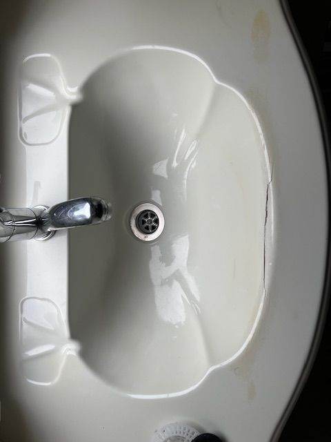 There is some wear to the bathroom sink (shown on photo) but has been like it since we owned it (11 years) and doesn't affect its use-could be easily replaced or repaired.