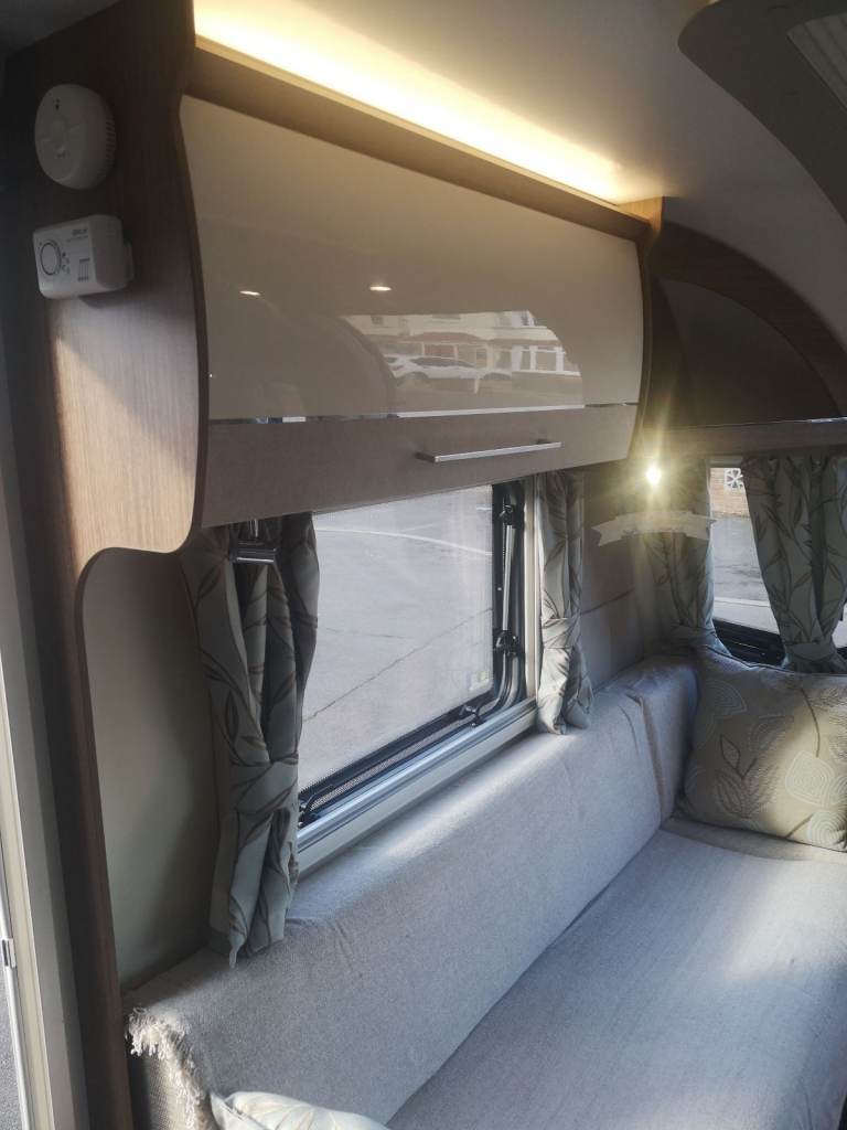 Immaculate condition special edition 4 berth twin axle top of the range model, Cris Registered Quad motor movers, transverse island double bed and a full end washroom, 2k of Extras, Full size Air Awning, Summer Air Awning, Air Windbreak, Two Tv's, Outside Table, Chairs, Water butts x2, waste butts, x2 Gas Bottles, Cup, plates cutlery, Literally everything a Caravan needs, Light and airy bright interior with Beautiful upholstery thats Always been covered, Alde central heating, Dab Rad/dvd Stereo, ATC trailer control, solar panel, alarm, Alko wheel locks, microwave and full size fridge/freezer island bed, loose laid carpets, black alloy wheels,outside gas bbq point and 230v socket, stereo system with bluetooth and usb charging points. Lovely example