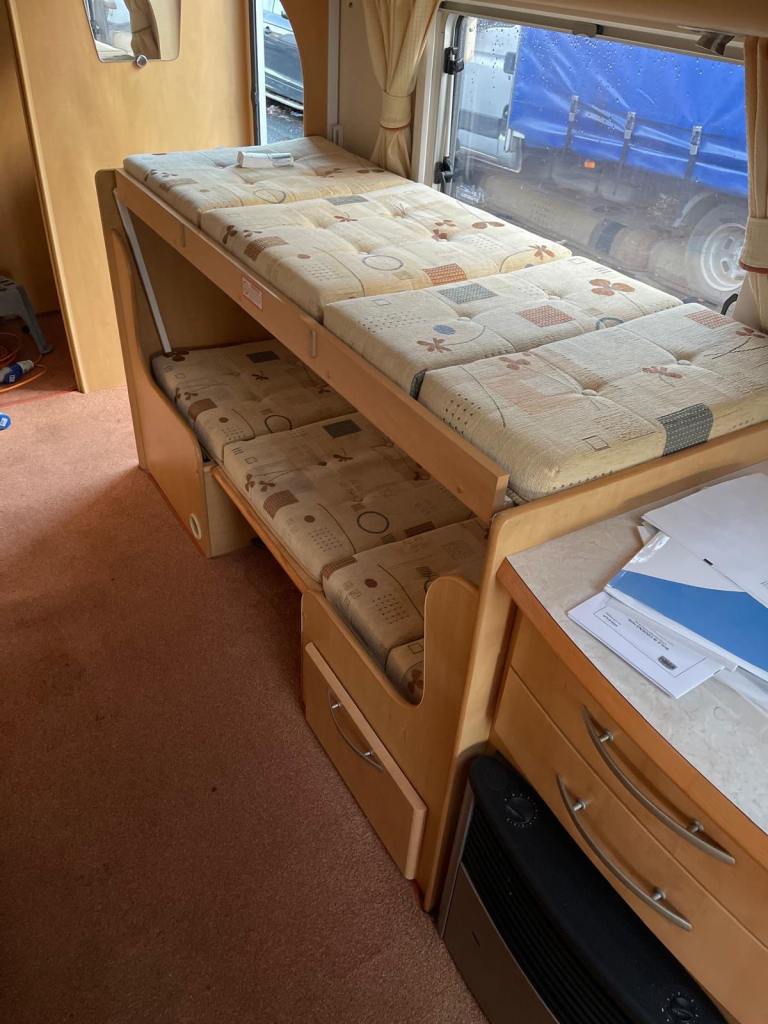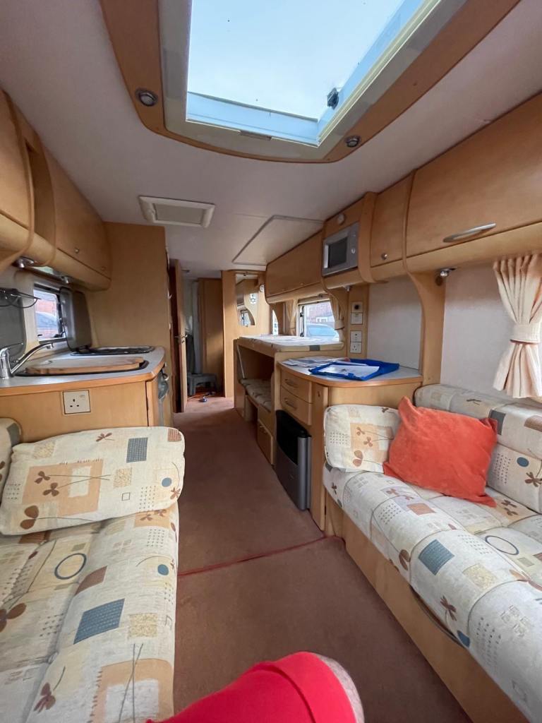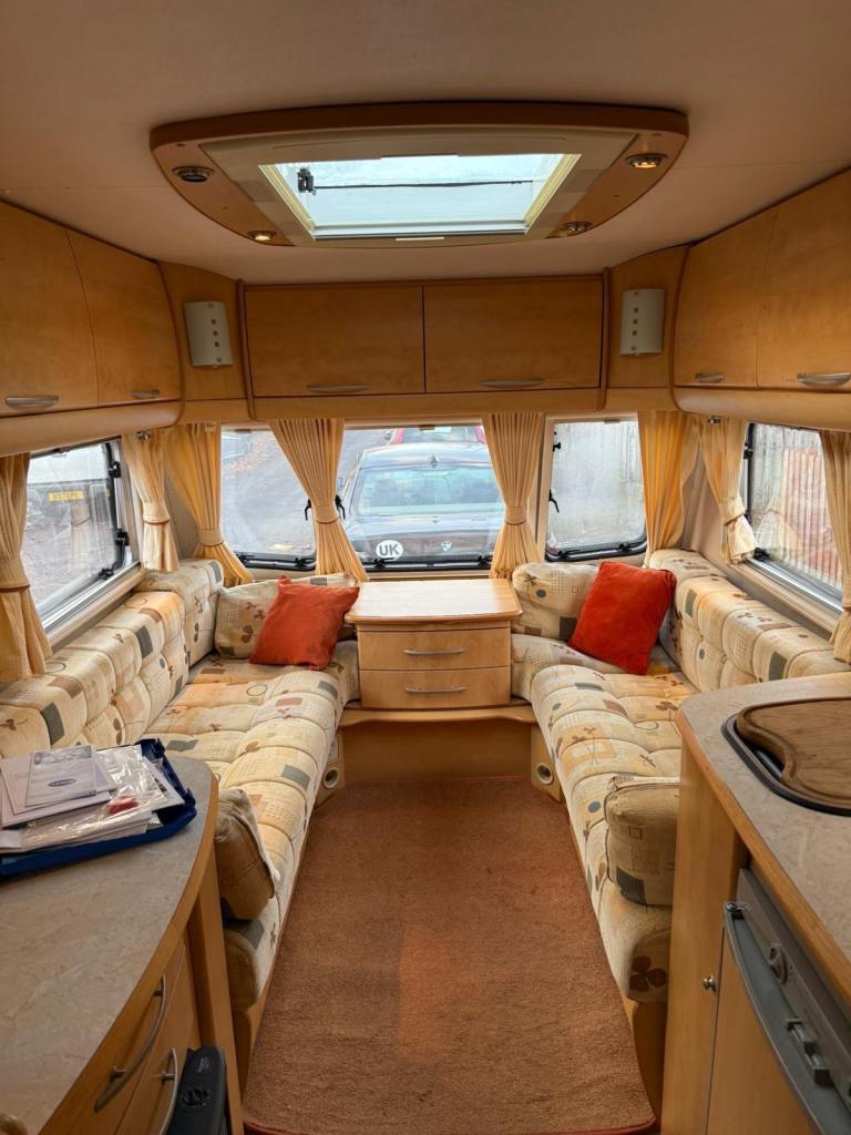 the caravan is in really good condition in inside and out, it’s got no damp soft spots or cracked windows the van is dry, the front end convert into a fixed bed on the left side is a fixed bunk bed and the right side can convert into a bunkbed or seating area, double end bathroom, lots of storage cupboards brand-new motor mover fitted on each side of the wheels. accessories