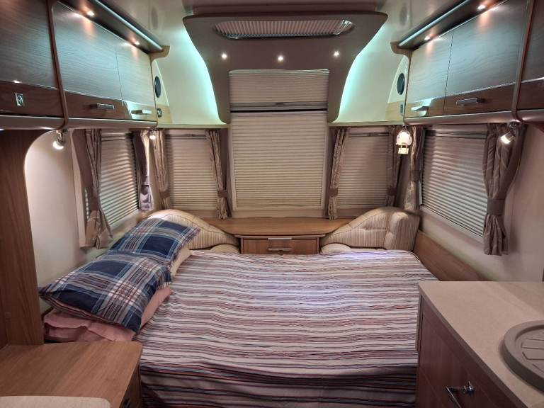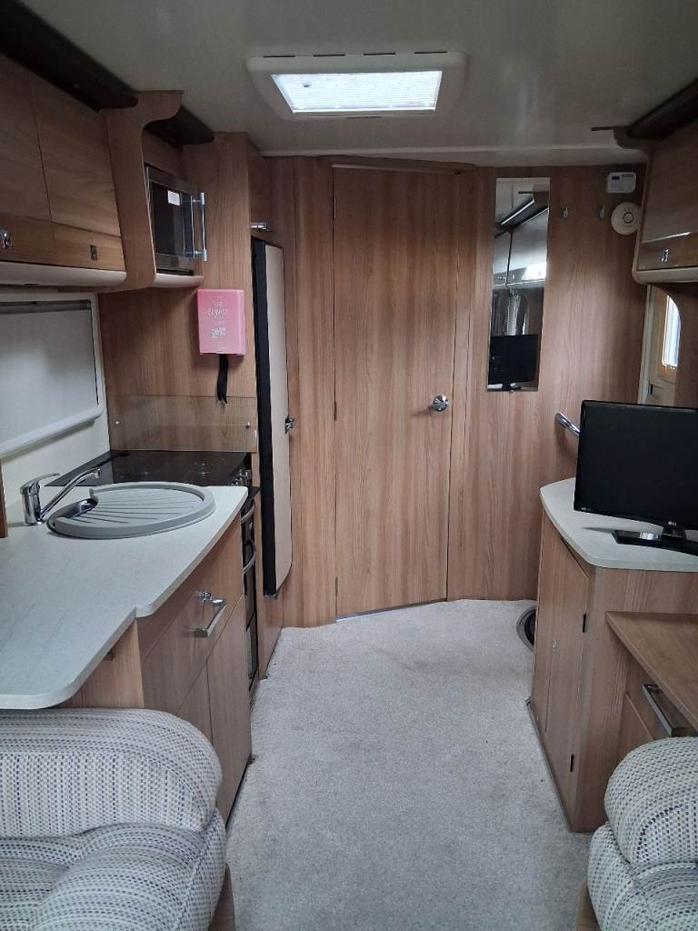 Illness causes sale. 2 berth, Single axle, Front lounge - Convertion, M.T.P.L.M 1369kg, Mass in Running Order 1242kg, External Length 6.47m External Width 2.26m, End washroom. Wardrobe, Dual power 12v - 240v. Solar roof panel for leisure battery,