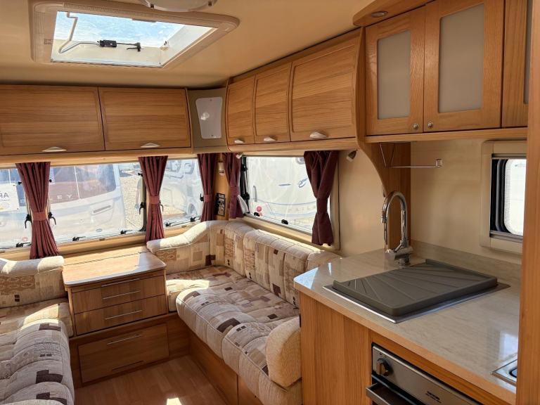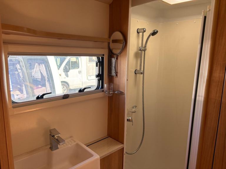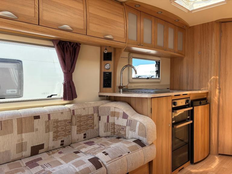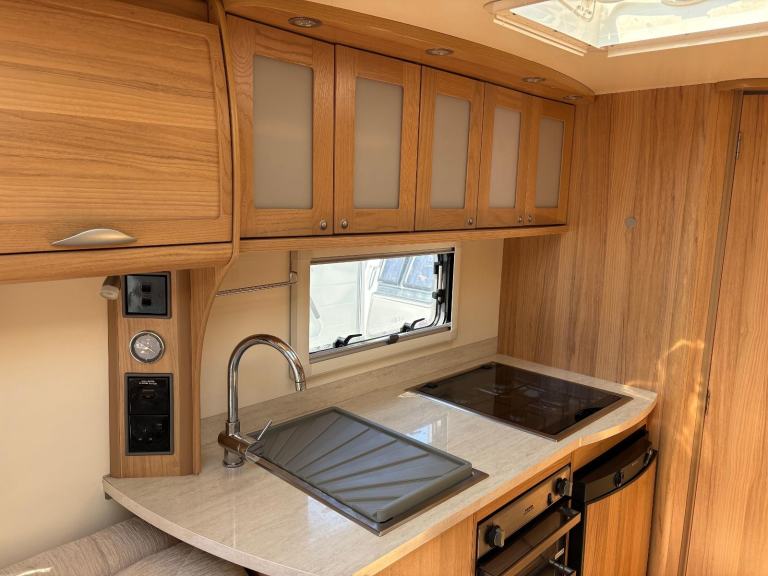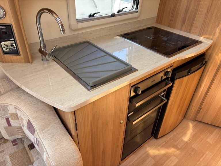 HOT/COLD WATER, 3 WAY FRIDGE, 240V ELECTRICS, HOB/GRILL, OVEN, MICROWAVE, ALDE HEATING, FLYSCREENS/BLINDS,TV AERIEL, SKYLIGHT, STABILISER HITCH, EXT 240v SOCKET, EXT BBQ POINT, MOTORMOVER