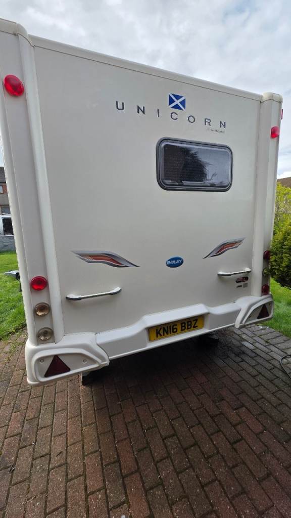 The caravan comes complete with Solar panel, Alde programmable heating system, ATC trailer control, Tracker alarm, as well as a number of essential extras including an inflatable awning (with breathable ground sheet, storm straps and pegs) Al-Ko hitch lock, Al-Ko wheel lock,Aquaroll, Wastemaster, Gas Bottle, caravan step,Extra long waste pipes and water hose for serviced pitches and more. This Unicorn has also been fitted with a remote control motor mover, making hitching up and siting this caravan on tricky driveways or difficult pitches a breeze.