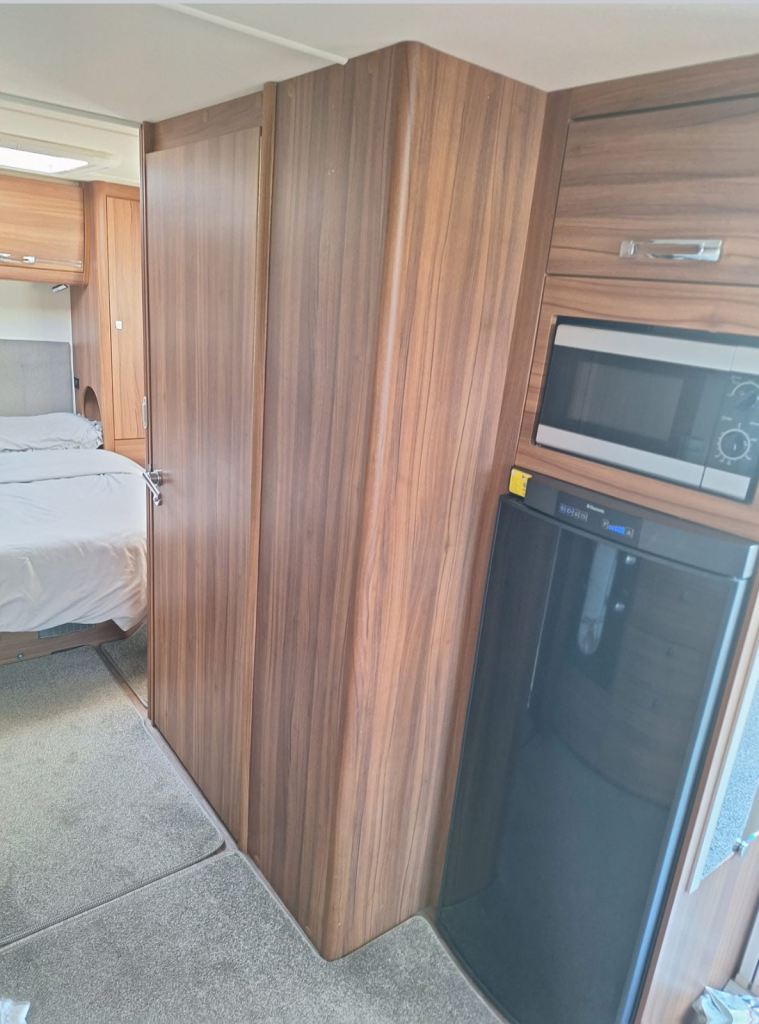 Underfloor heating, self leveling, tracker, alarm, Alko wheel locks, hitch lock. Full size fridge freezer, microwave, full gas oven with 3 rings, separate grill. Shower, toilet.