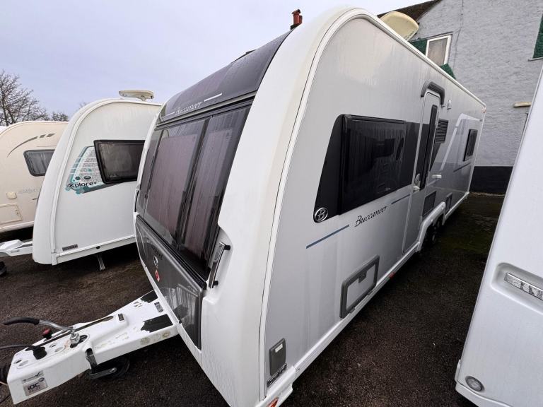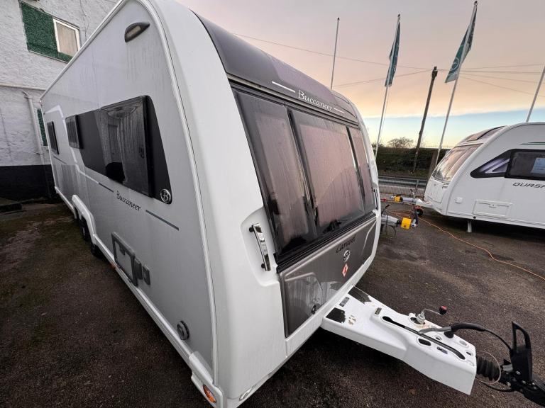 WE HAVE JUST PURCHASED THIS TOP OF THE RANGE BUCCANEER FROM A PET AND SMOKE FREE HOME..FOR THOSE THAT DONT KNOW BUCCANEER ARE CONSIDERED THE BEST MONEY CAN BUY CARAVAN WISE..THE SPECIFICATION IS MASSIVE, EVEN COMPARED TO MUCH NEWER [Website URL removed] INCLUDES IDC TRAILER CONTROL (ELECTRONIC ANTI-SNAKING SYSYTEM) E&P AUTOMATIC LEVELLING AND LEG SYSTEM, 100W SOLAR PANEL, EXTERNAL GAS BBQ POINT AND MAINS SOCKET,ALDE WET CENTRAL HEATING, TALL FRIDGE FREEZER, OMNIVENT EXTRACTOR FAN, ON BOARD 9 GALLON FRESH WATER TANK, TOP OF THE RANGE SOFT FURNISHINGS, AND SITS ON THE MUST HAVE 8FT WIDE CHASSIS WITH A BONDED ROOF CONSTRUCTION..THIS IS THE BEST DEALER PRICED 2016 CARAVAVEL IN THE U.K...THE PRICE INCLUDES A PRE-DELIVERY SERVICE, CLEAN INSIDE AND OUT, FULL WORKING HANDOVER ON COLLECTION AND A COMPREHESNIVE 12MTH WARRANTY...WE ARE OPEN 7 DAYS FOR VIEWINGS AND DELIVERY CAN BE ARRANGED FOR ONLY £2.00 PER MILE (ONE WAY)