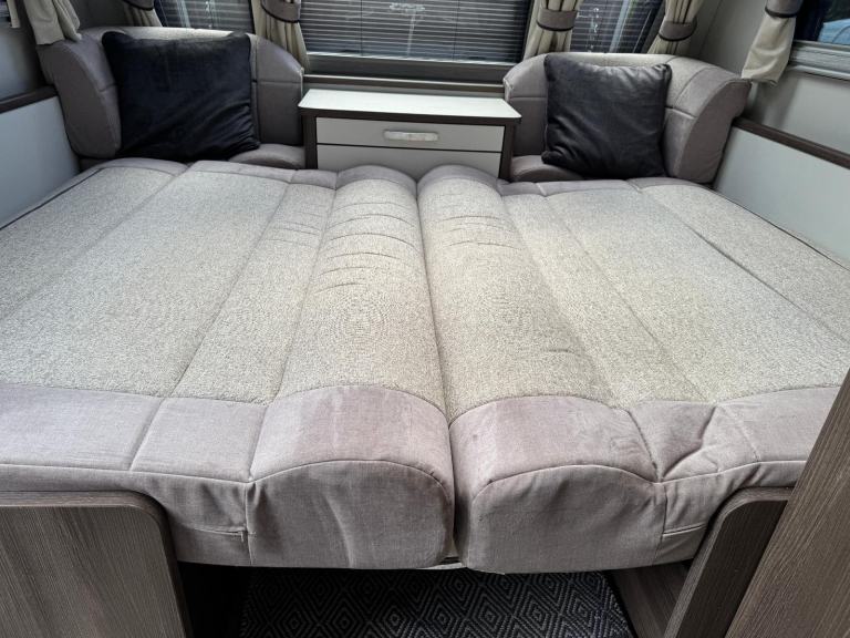 2023 Elddis Buccaneer Cruiser | Luxury 4-Berth Twin Axle Caravan For Sale in Coventry Experience the absolute pinnacle of touring luxury with the 2023 Buccaneer Cruiser. Renowned for its expansive 8ft-wide body and high-end technical specification, this flagship model offers a true home-from-home feel combined with the unrivalled stability of a twin-axle AL-KO chassis. The Buccaneer range is designed for those who refuse to compromise on comfort, featuring the revolutionary E+P Self-Levelling system which levels the caravan at the push of a button in under two minutes. Year-round touring is made effortless by the Alde central and underfloor heating system, providing consistent warmth through a multi-programmable wet heating circuit. Inside, the layout boasts a spacious L-shaped lounge perfect for relaxation, leading through to a gourmet kitchen equipped with a large fridge-freezer, microwave, and dual-fuel hob. The standout feature is the retractable fixed transverse island bed fitted with a luxury mattress, which provides easy access to the full-width rear washroom. This washroom functions as a private dressing area, complete with a separate LED-lit shower cubicle and a high-flow water system. Technological highlights include a 100W lightweight solar panel for off-grid capability, a 40L onboard water tank, and a built in WiFi unit (just pop in a data sim). Safety is prioritized with AL-KO ATC (Active Trailer Control), two AL-KO Secure wheel locks, and a tracker-ready system for peace of mind. This 2023 model is in immaculate condition, featuring signature silver GRP sides and the "Stargazer" panoramic rooflight that floods the interior with natural light. Here is a fantastic opportunity to own a premium touring caravan that is ready to use and perfect for UK or European adventures. This Caravan is based near Coventry , for more details or to arrange a viewing please don’t hesitate to get in touch on [Phone number removed]– Alistair Richards