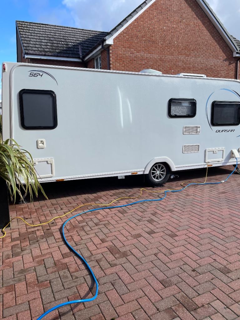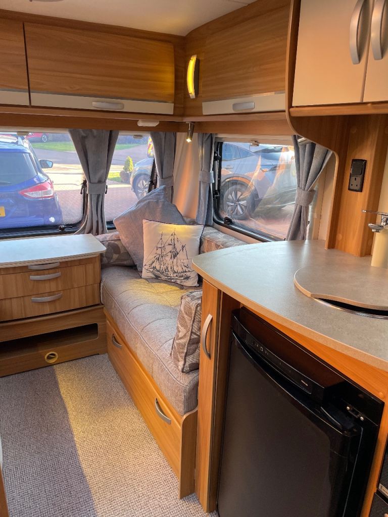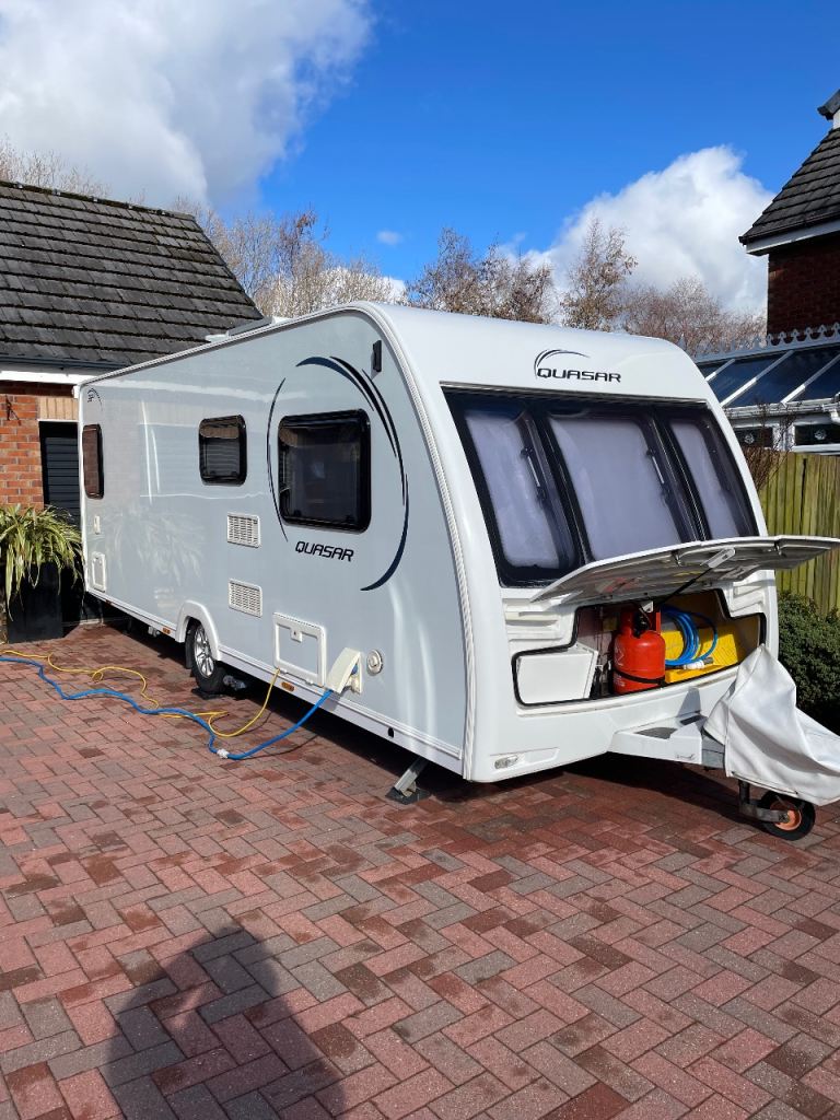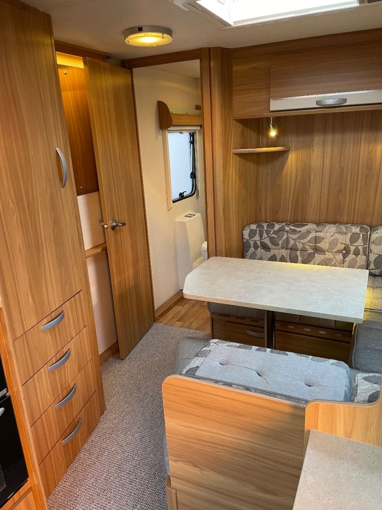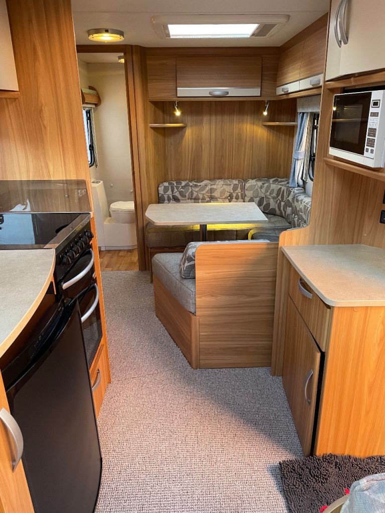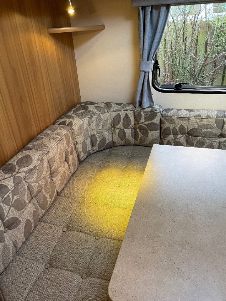 Lunar Quasar 564 four berth caravan for sale complete with solar panel,motor mover,fully serviced ready to go extra seating where the front drawers/table are situated electric heating and water