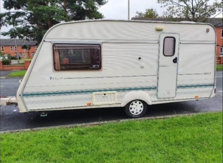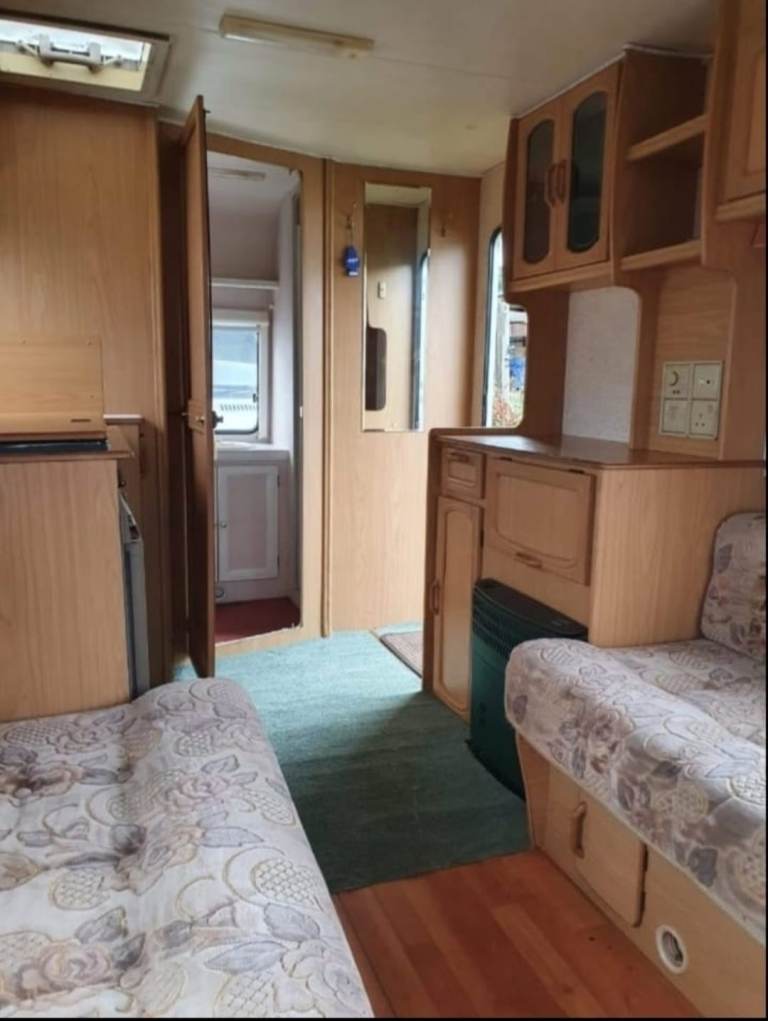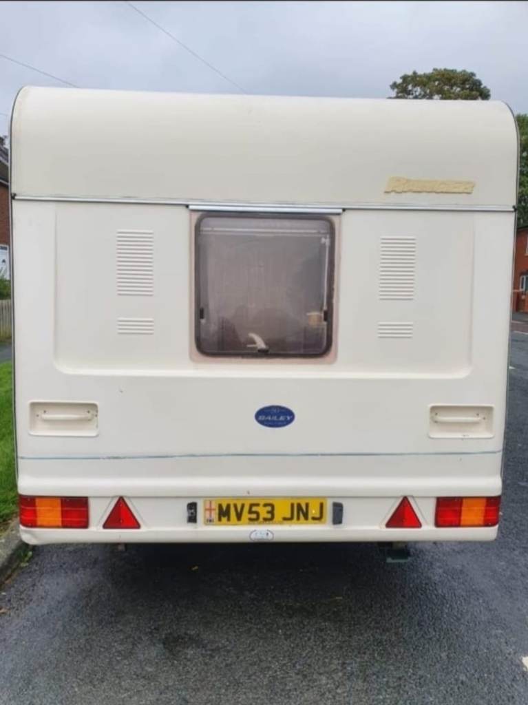 Here I have a 2003 bailey ranger 2/3 berth caravan. The front side of the caravan turns into sleeping and dining area also has curtain's blinds and fly nets. caravan has a 3 way fridge washing up sink, hot and cold water,hob grill and oven.Gas,blowheater caravan runs of 240 and 110 hookup.And large end shower room swivel toilet and full size shower ono