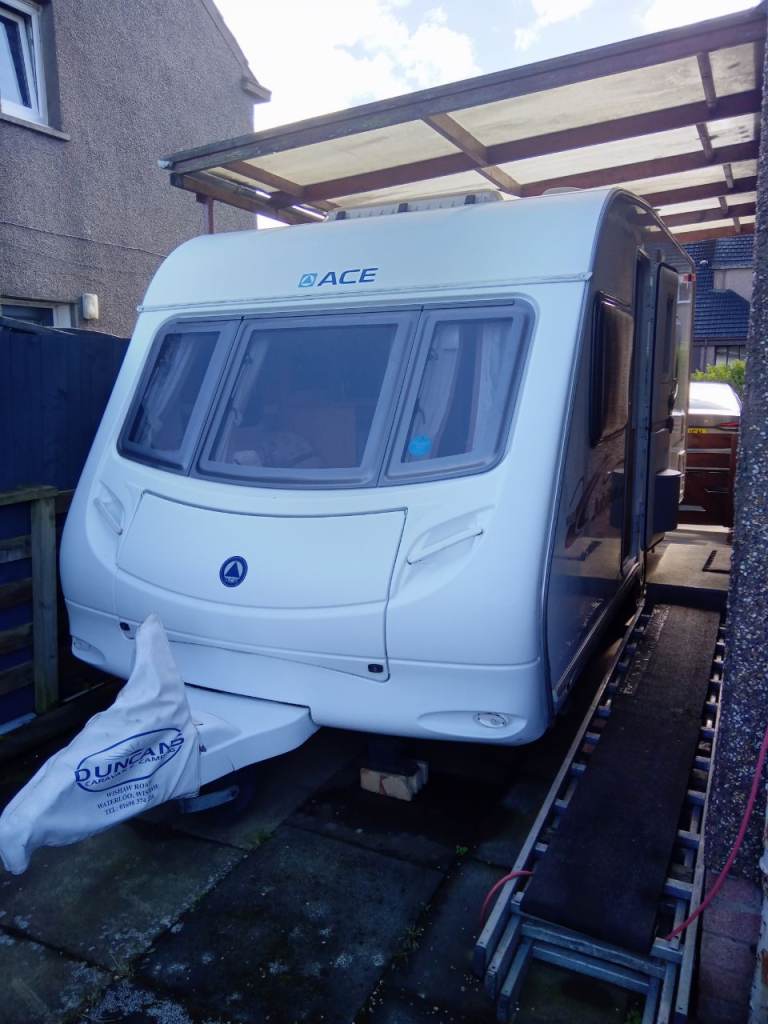 2007 Ace Jubilee 4 berth fixed bed porch awning mover blow air central heating original carpets pressurised water system stereo radio and cd non smoker no pets no dampness very good condition through out 5 power points waste water and fresh water butts with covers included no dampness contact Grahame