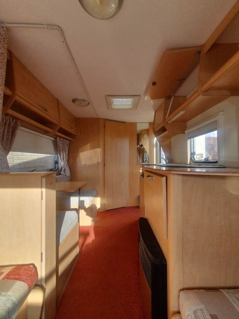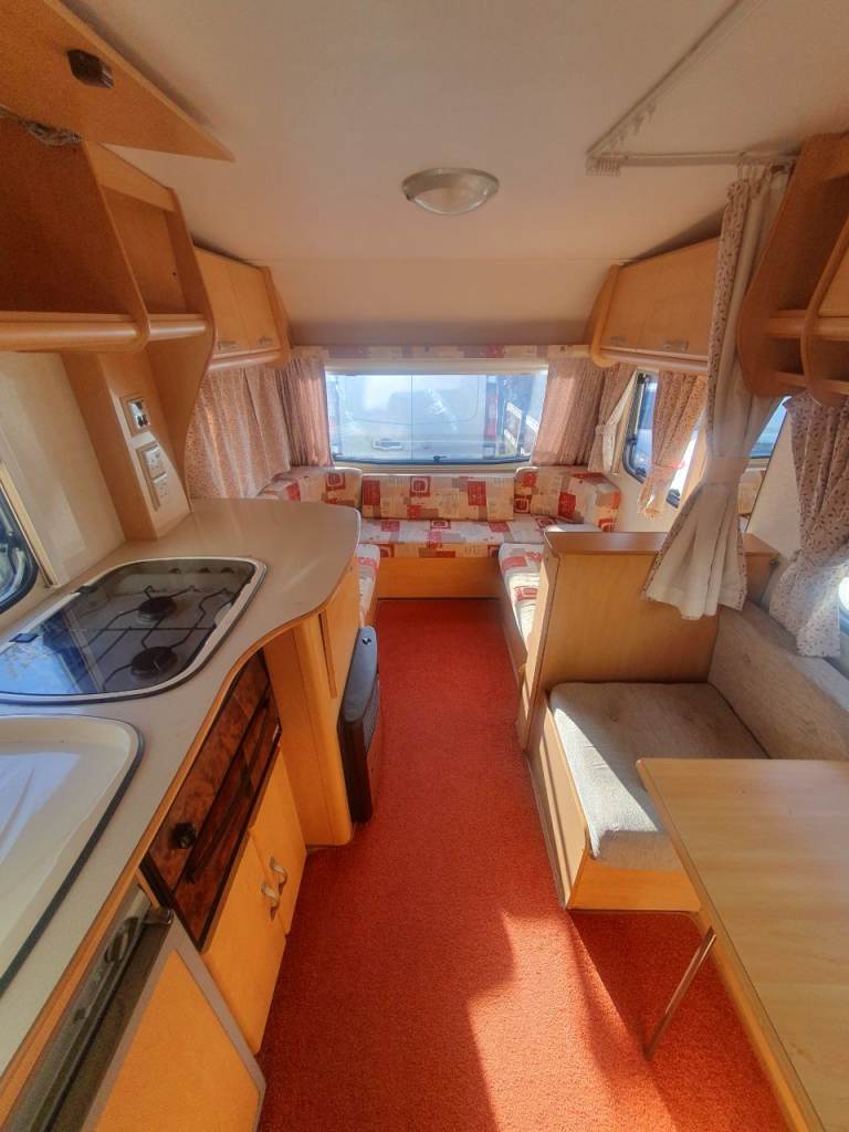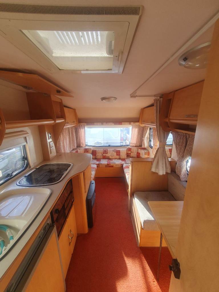 Dining area can also be turned into a large bed and the side can turn into sitting and dining area. and also can be turned into a bed its got hob grill oven swivel toilet full separate shower area curtains blinds and flynets it's got gas electric blow heater fridge 110v and 140v hookup 2 sets of keys all paper work £2750 open to sensible offers text for more information please