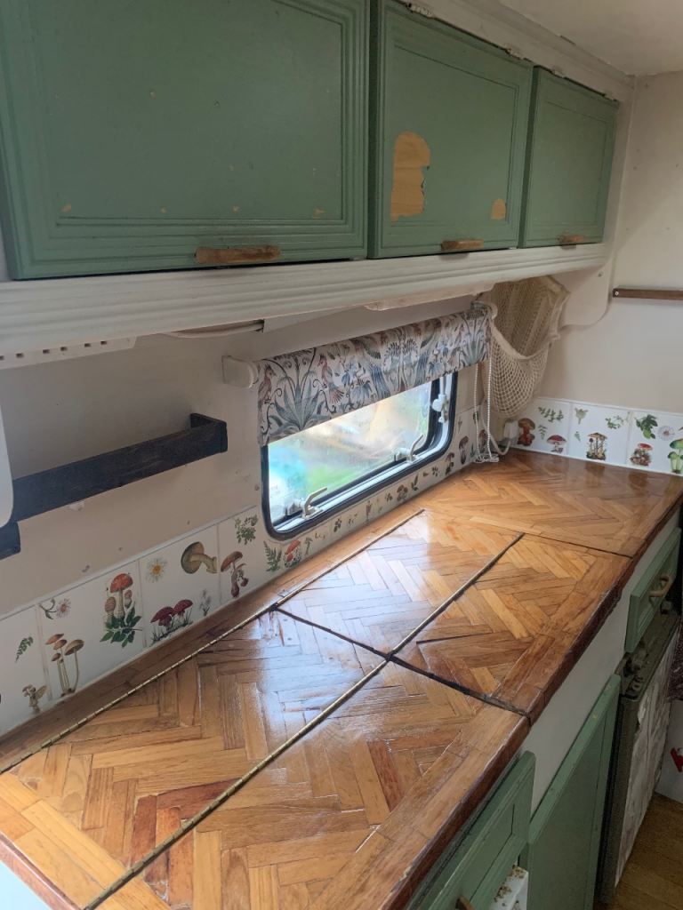 I have installed 2 new roof vents, solid mahogany parque kitchen worktop, solid oak floor and solid pine worktop.