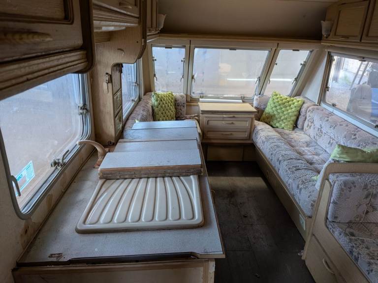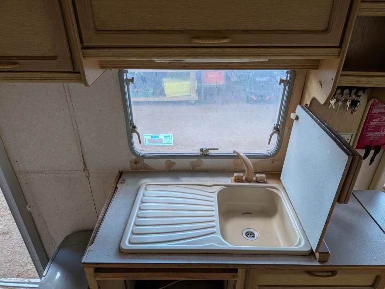 Ive a nice caravan here that needs a little bit of effort before it's ready to be used properly. It drives well, has all the towing functions and stabilisers. It has a double bed and 2 single kids beds. It has a sink and a working toilet. It has electric hook up working fine. It has keys for the doors and all the windows seem to open and lock fine too.