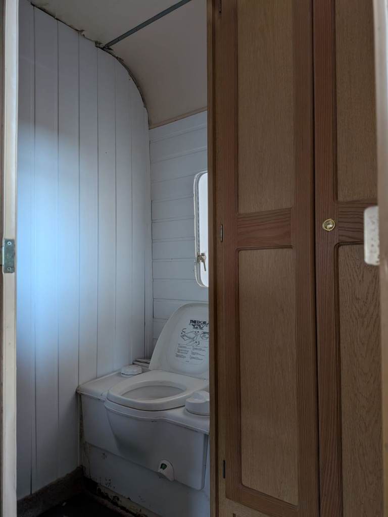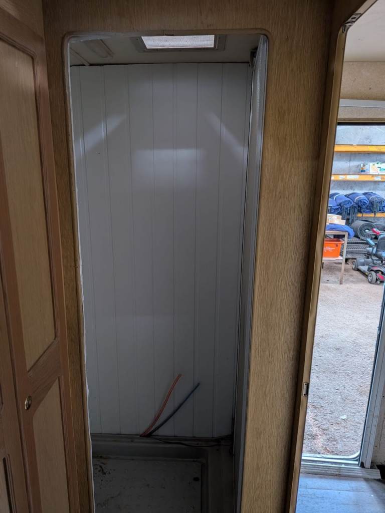 It doesn't have the shower installed, nor does it have a fridge. The outside has had a few scrapes but it's all solvable with a bit of time. The floor has had some lino put down but was not finished.