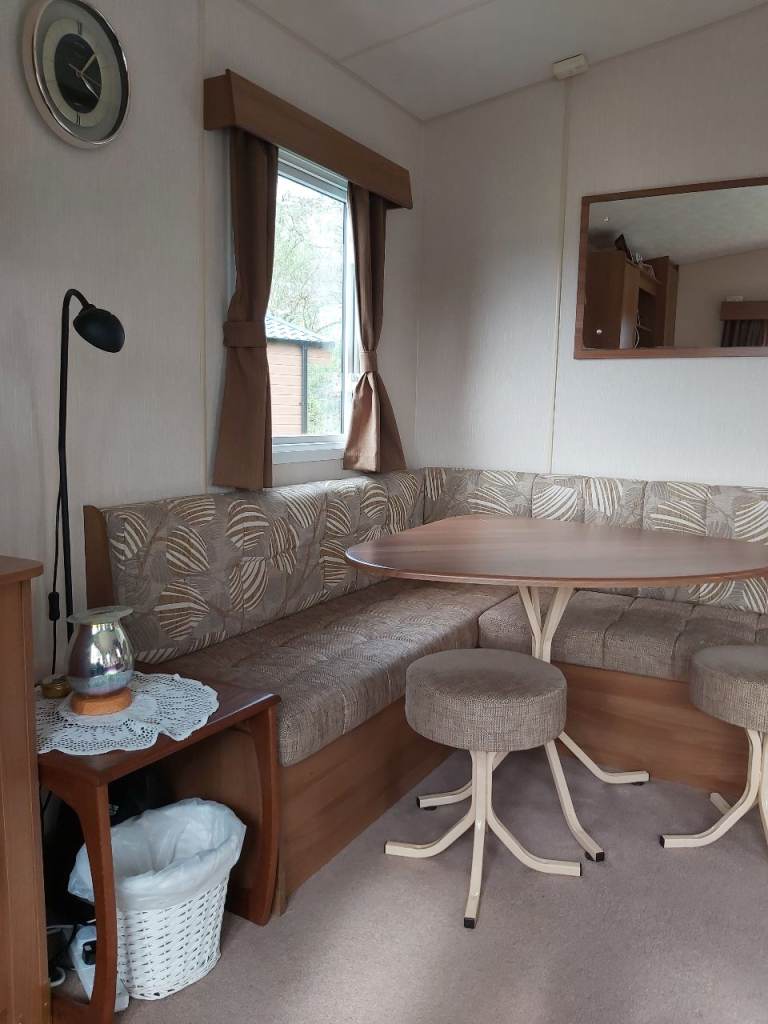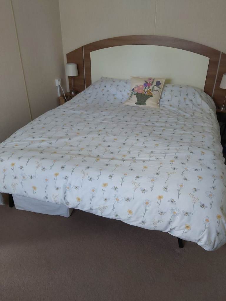 The caravan is on an elevated pitch and has gorgeous panoramic views across the park and river. Double glazed, with electric plinth heating, this is a spacious family caravan sleeping up to 6. It’s in very good condition and would be an ideal first caravan. The master bedroom has a king-size bed with en-suite toilet; the second bedroom has two single beds. There's a family bathroom with shower and heated towel rail, and a pull-out double bed settee in the lounge area. Many extras are included in the sale, and others can be added by request. Send a private message to request more information and organise viewing.