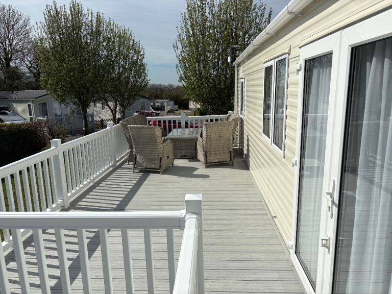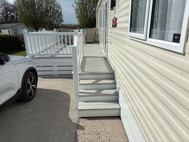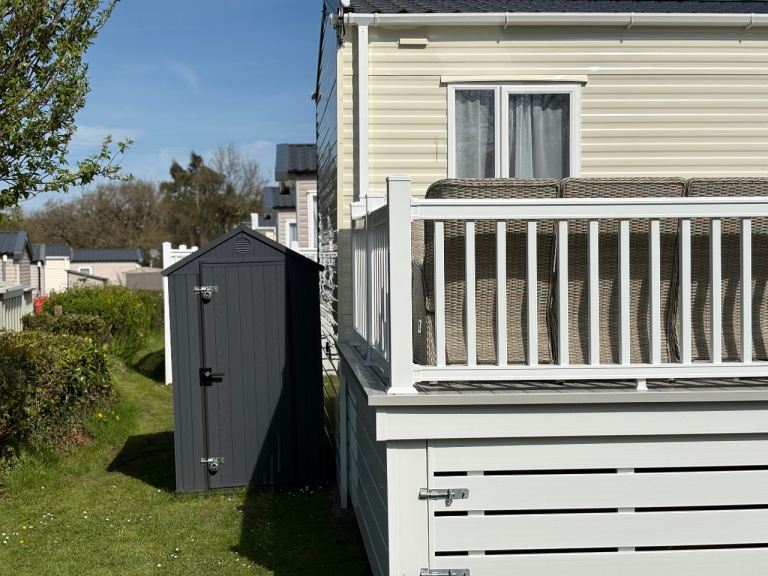 The Carnaby Oakdale is sited on a fantastic pitch it comes with a central lounge and kitchen, it also has a L shape sofa which can pull out as a bed, it has three bedrooms two twin and one En-suite central heating and electric fire it also comes with a shed at rear of caravan, it comes with side decking and full skirting.the caravan is sited at John fowler holiday park Llanrhidian north gower it’s worth a look open to offers.