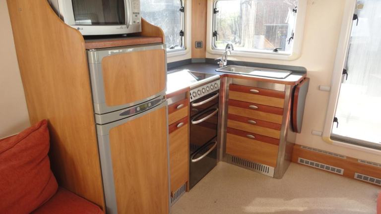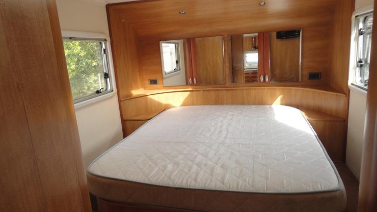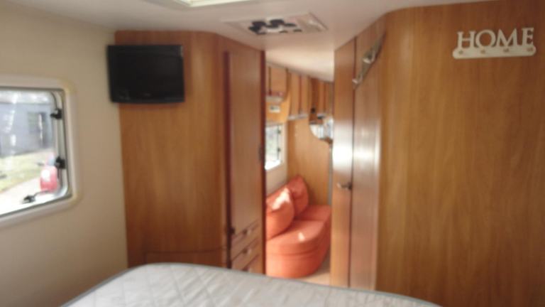 TV; TV Aerial; Central Heating; End Kitchen; Microwave; Fixed Double Bed; Cooker; Air Conditioning; External Side Lockers; 12V Lighting; Blinds; Grill; Solar System; Double Glazing; Mains Hookup; Oven; Sink; Hand Washbasin