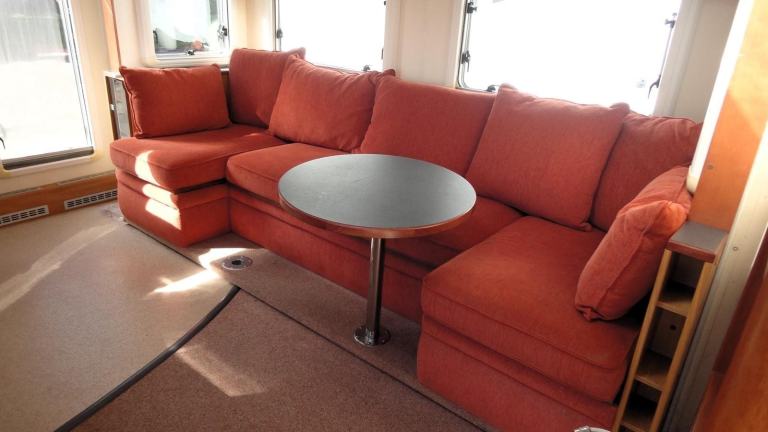 Large slide out, Air brakes, Air suspension, solar panel, fridge/freezer, corner kitchen, microwave, water heater, heater, A/C, king size bed, large bathroom with toilet, sink and separate shower, double glazed and winterised for four season use, good condition for its year. Note: awning shown in photo is no longer with the trailer.