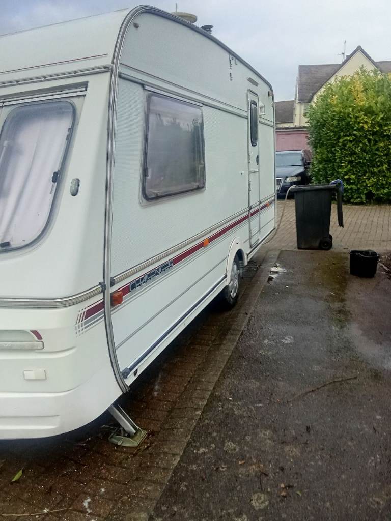 The Swift Challenger 470 SE is a popular, high-specification 2-berth touring caravan featuring a spacious end washroom, typically known for a well-equipped kitchen and comfortable, light-filled lounge. Needs a tidy up. Lovely for some one as a first one. Offers