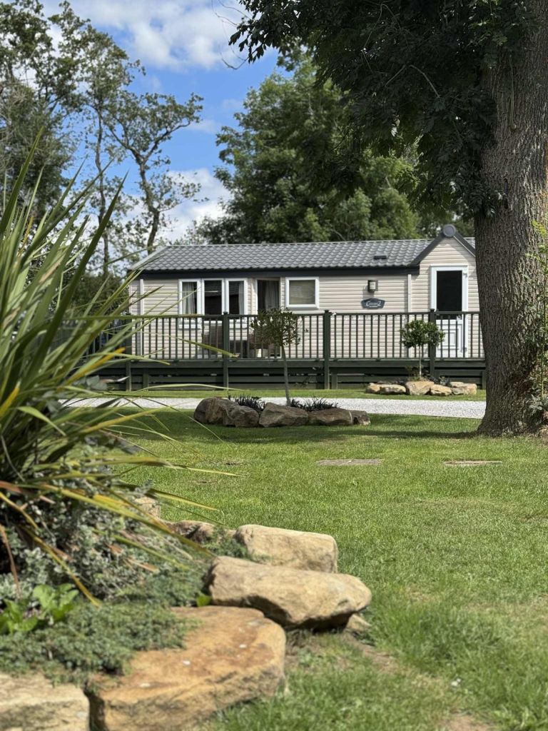 Has a large side deck which faces on to the burn which refs through the park.