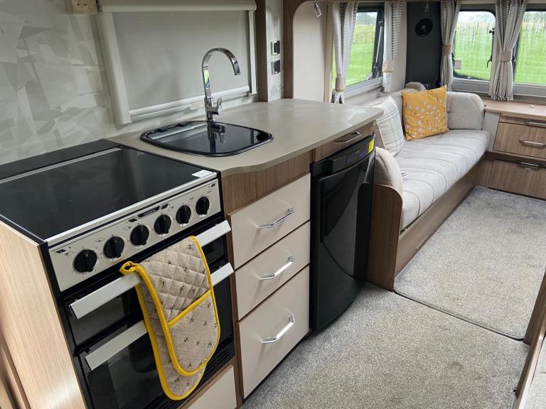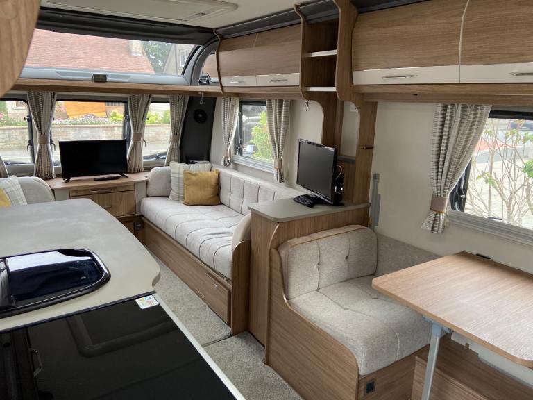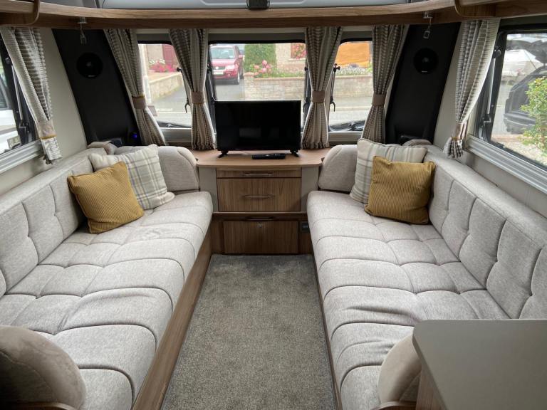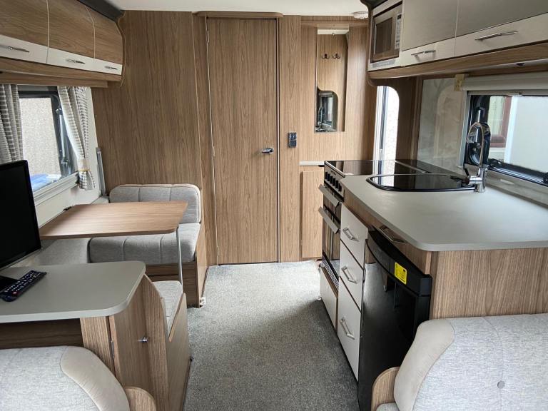 2018 in very good condition. Alde heating, motor mover, end bathroom, wheel and hitch locks, BBQ point, waste and fresh water butts and hoses, electrical hook up cable, alarm, tracker, Kampa air awning and ground sheet. Recent tyres and battery. Serviced last summer.
