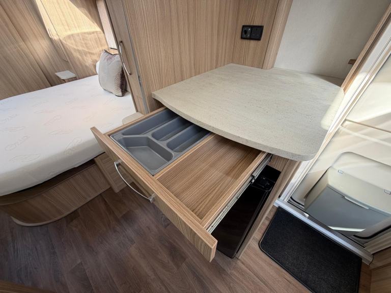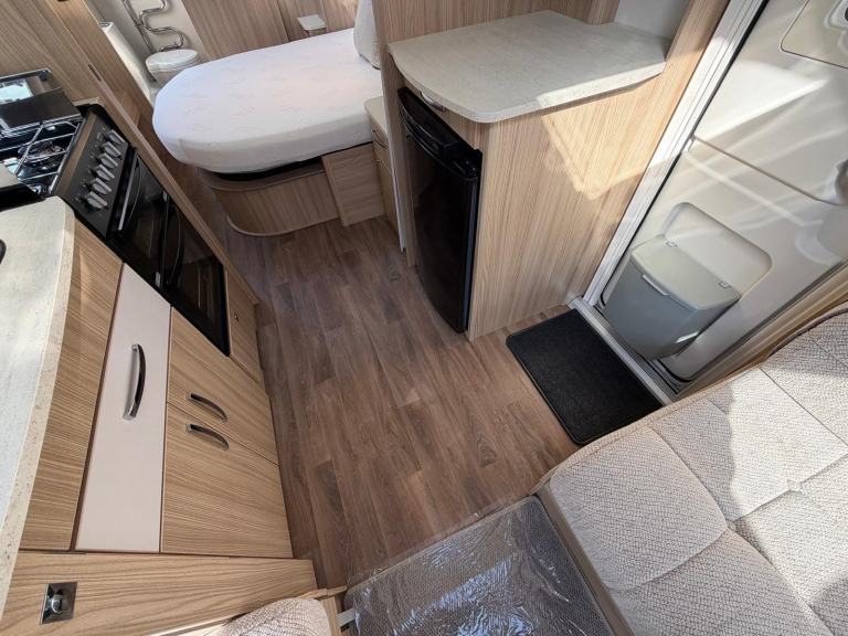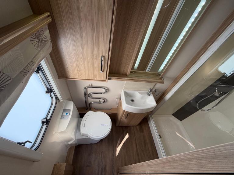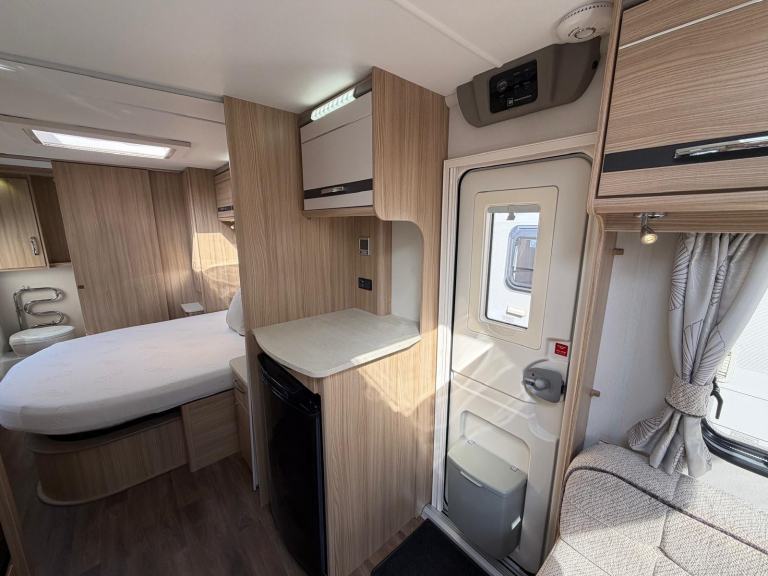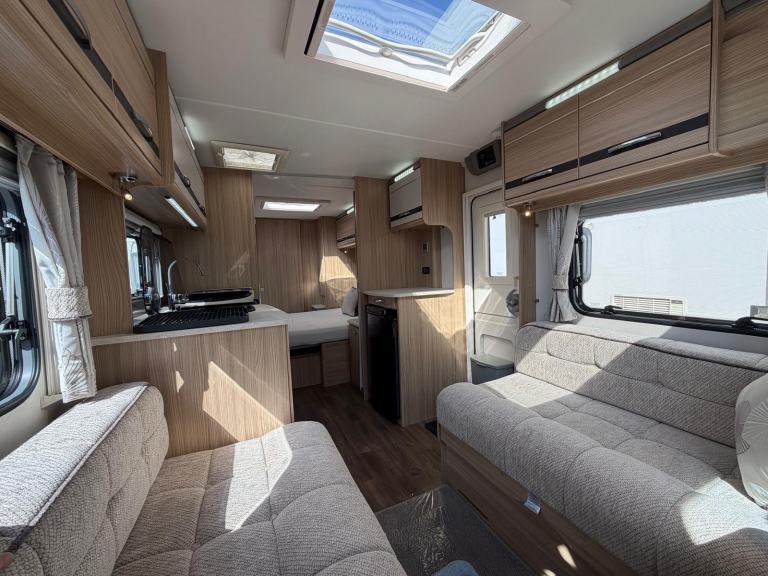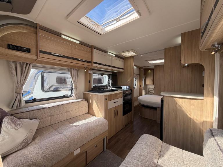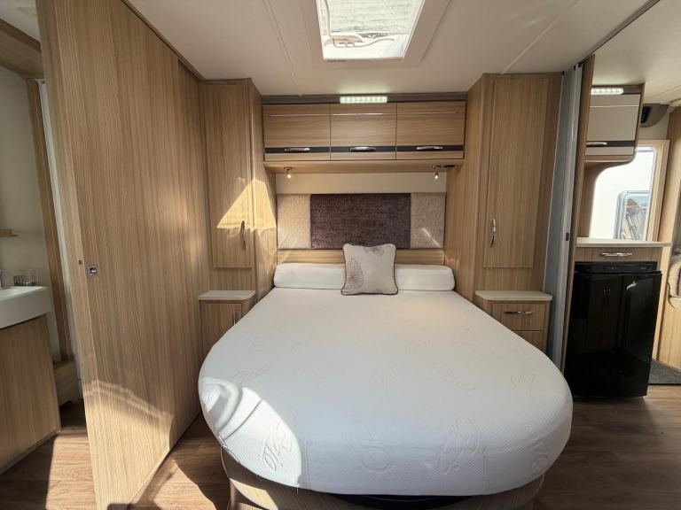 This popular fixed island bed layout features a spacious front lounge, central kitchen and large rear washroom with separate shower, making it ideal for couples or families looking for a high-quality touring caravan.