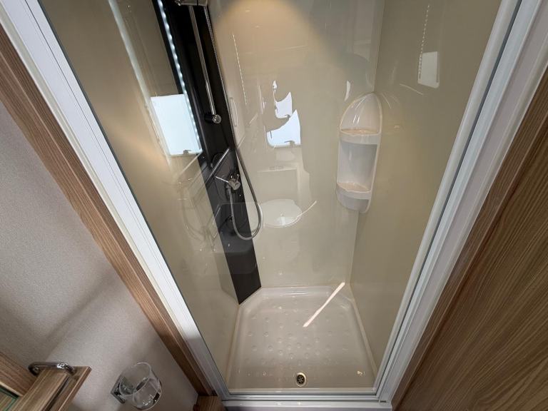 Sunroof; Central Heating; TV Aerial; CD Player; Fixed Double Bed; Microwave; Alarm; Cooker; 12V Lighting; External Side Lockers; Blinds; Grill; Double Glazing; Mains Hookup; Separate Shower; 240V Lighting; Sink; Oven; Hand Washbasin