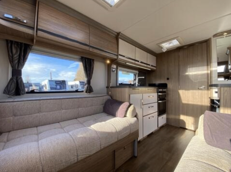 This is a lovely, luxurious and very comfortable 2-berth caravan, and is in immaculate condition. The bed can be made up as 2 (generous) singles or a large double.