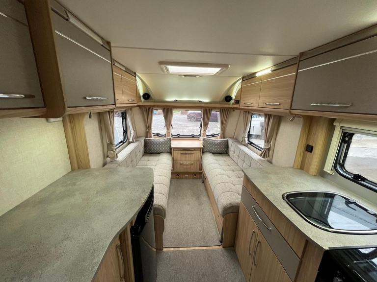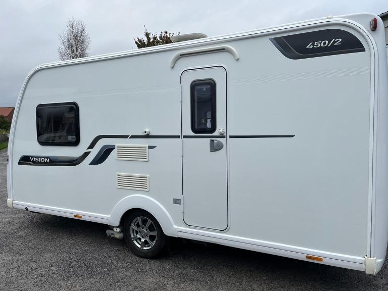 2014 COACHMAN VISION 450 / 2 BERTH - full rear washroom incorporating a separate shower cubicle, toilet and vanity unit - offside rear central kitchen - nearside central dresser unit / TV display - 2 x 6' singles / 1 x double at the front - A refreshing up to date 2 berth tourer, plenty of space with the added benefit of mounds of storage, light and bright inside throughout ! Coachman build quality is unrivalled and has been proven to be one of the leading manufacturers on the market to date, viewing is highly recommended to appreciate the condition of this tourer