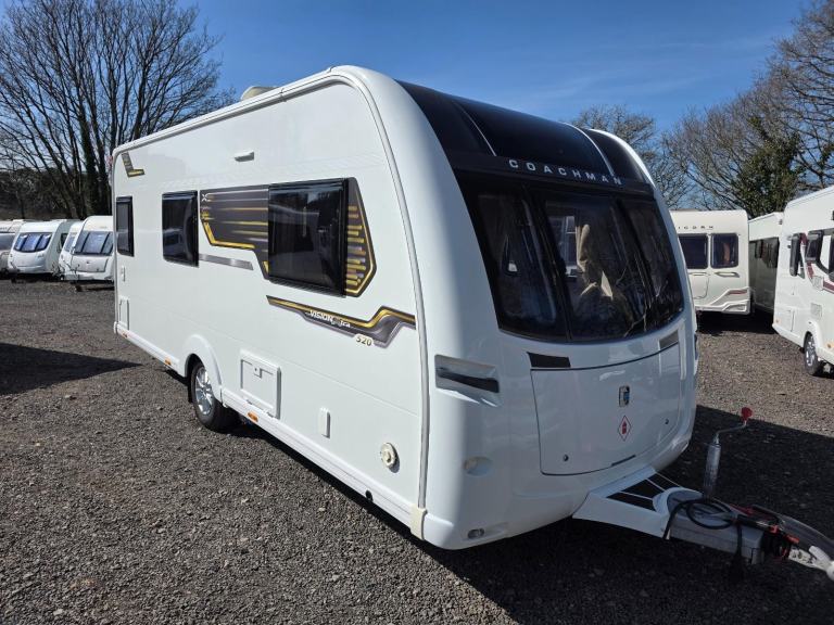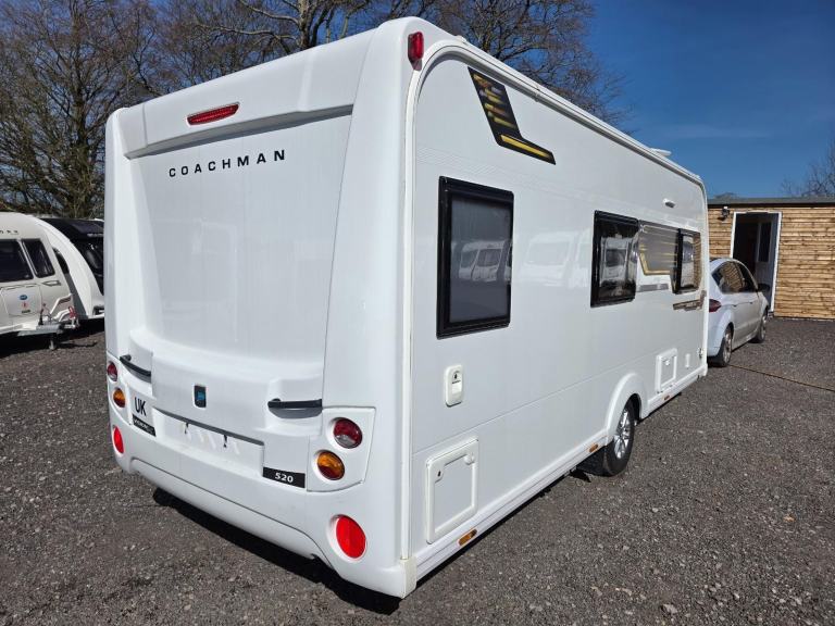 Coachman Vision 520 XTRA, 4 berth caravan, in stunning condition inside and out. This caravan is fully ready to take camping, it has lots of features and extras what you would expect from a high spec caravan such as this. It includes: hot and cold water, full central heating, full screens and blinds, full oven and grill, three-way fridge/freezer, 240–12 V electricity, HEKI rooflight, Alko Antisway towbar and much more.This caravan comes with a full