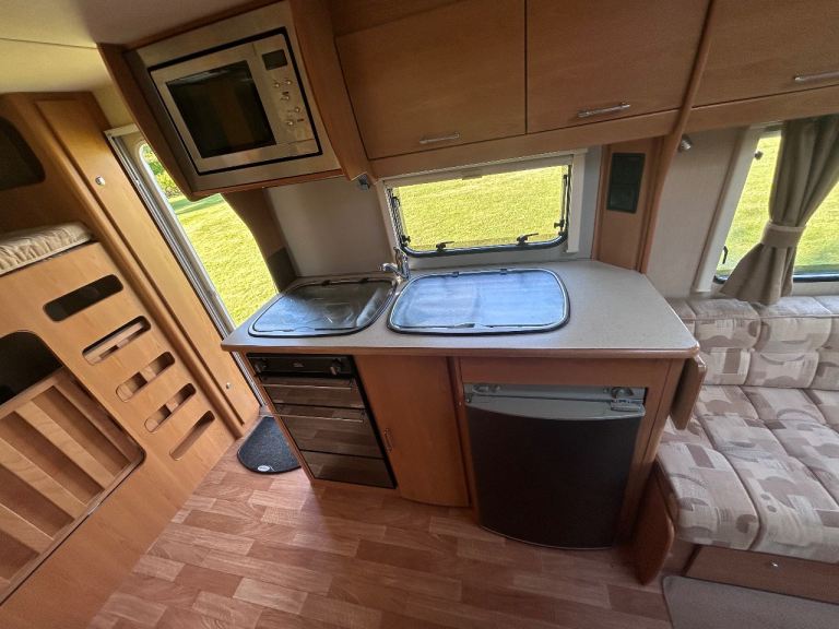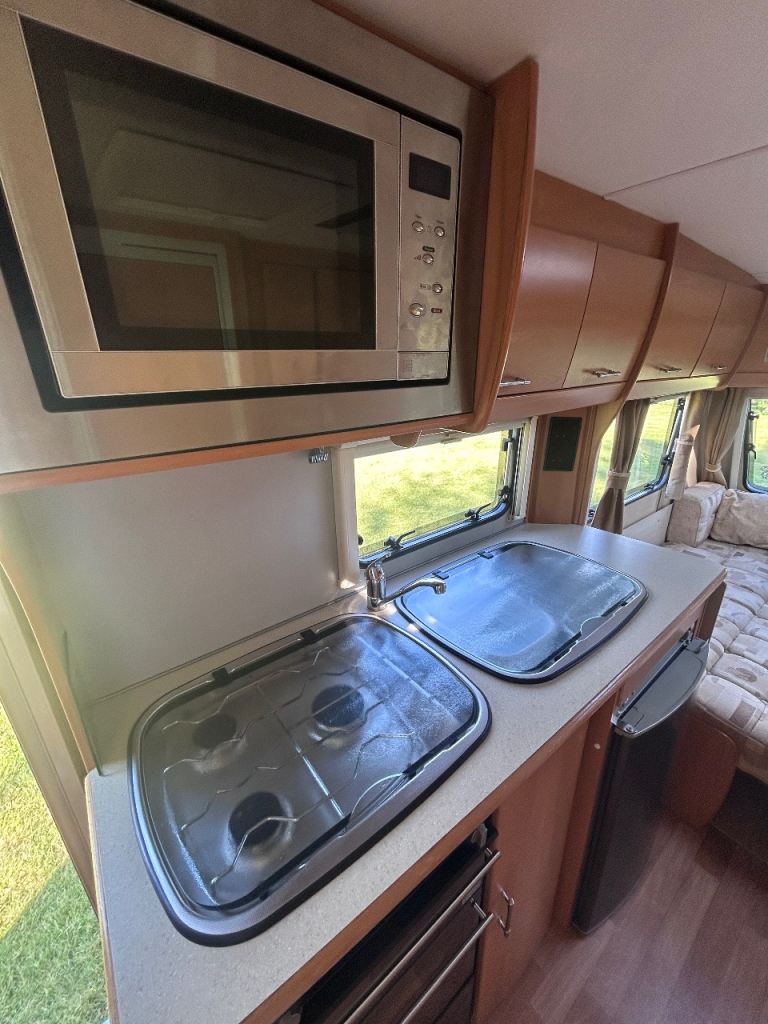 Fully operational bathroom, 3 way fridge/freezer, gas oven, hob, microwave.