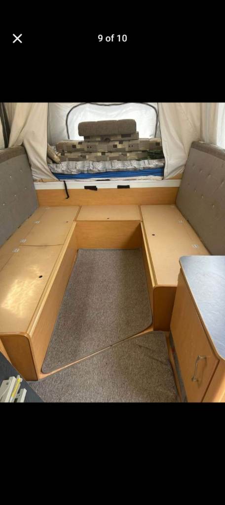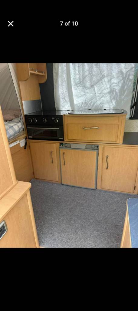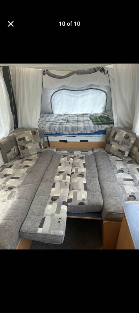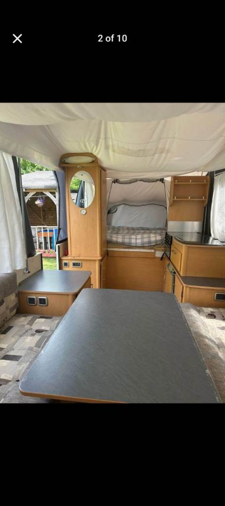 2010 model with Isabella upper and awning. Excellent condition for the age and everything works as it should. The heater makes it a genuine 3 season proposition. Beds are comfy and it's a 6-berth. Easy and light to tow (c.900kg), and easy and quick to erect and take down. Hot water, oven, 3-pin power sockets. Comes with all weather cover and all necessities such as gas bottles x 2, water butt, waste master, awning floor matting, electric hookup.