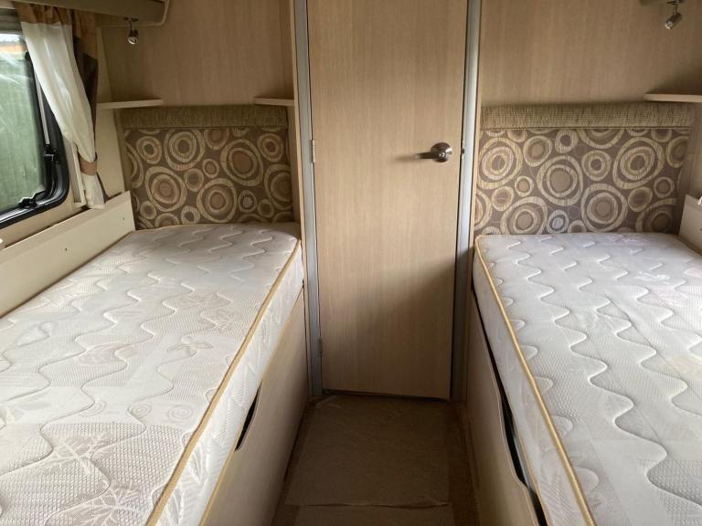 * 2 fixed single beds, 1 make up double and full-width rear washroom.