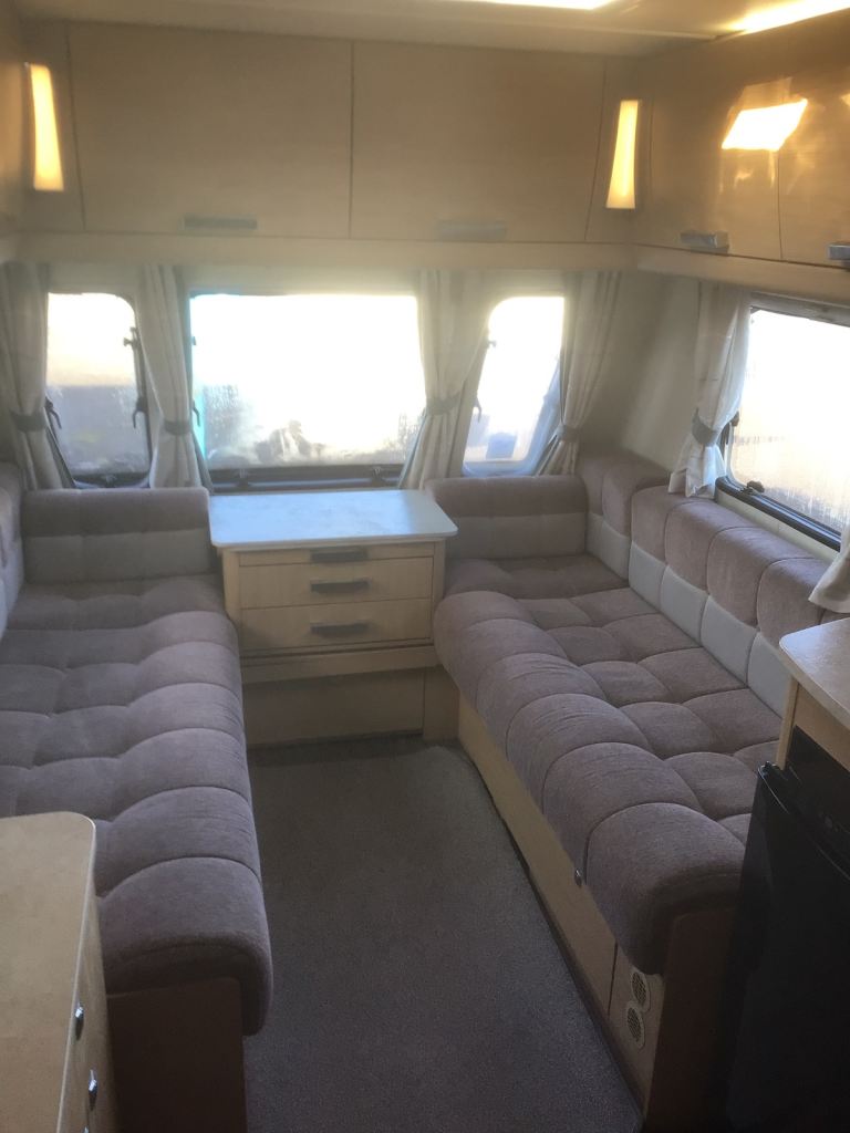 This 2 BERTH HAS BEEN CAREFULLY LOOKED AFTER BOTH THE FURNITURE AND THE SOFAS FURNISHINGS ARE IMMACULATE. THE LONG SEATS CAN BE USED AS TO SINGLES BEDS OR CONVERTED TO A GENEROUS DOUBLE COMES WITH A MOTER MOVER.MICROWAVE. HOBS.GRIL.OVEN.3WAY FRIDGE. SEPARATE SHOWER. SEPARE WHEEL. CASSETTE LOO. FLY BLINDS SCREENS .LEG WINDER. STEP .RADIO CD PLAYER. SMALL AWNING AIR BEAM .NEW LEISURE BATTERY. REGISTERED DEC /2012