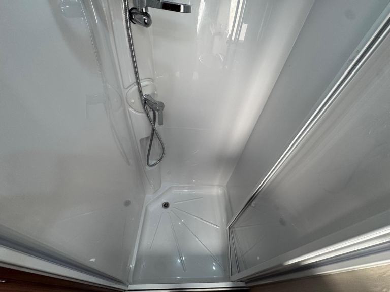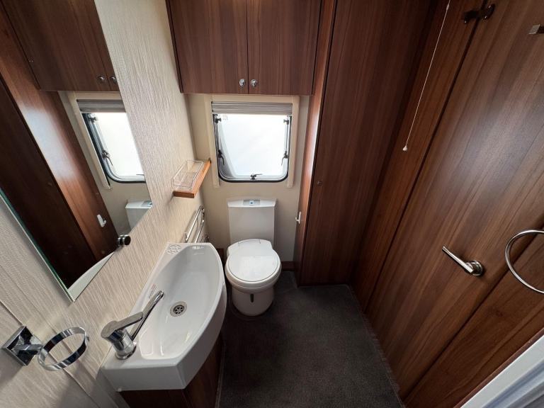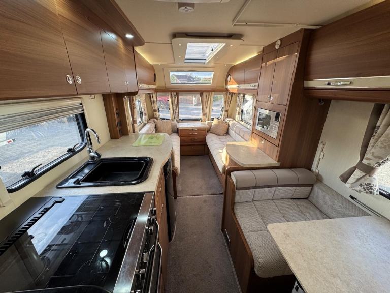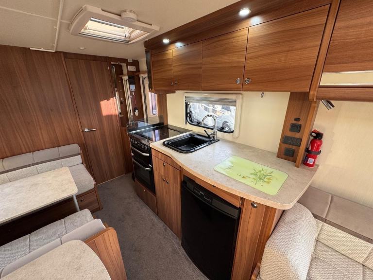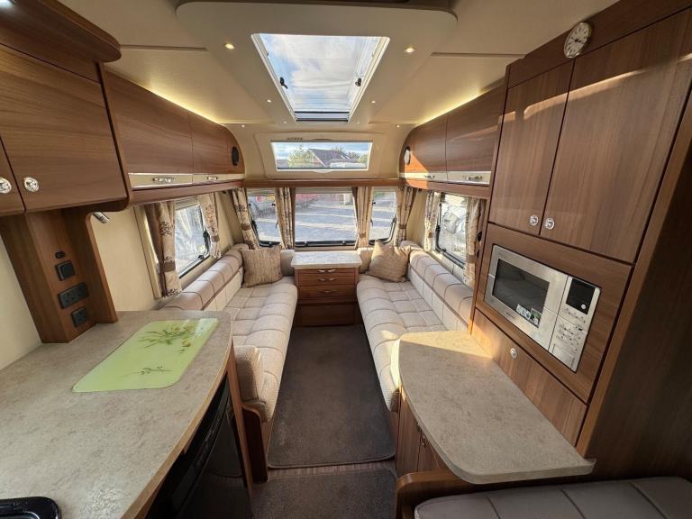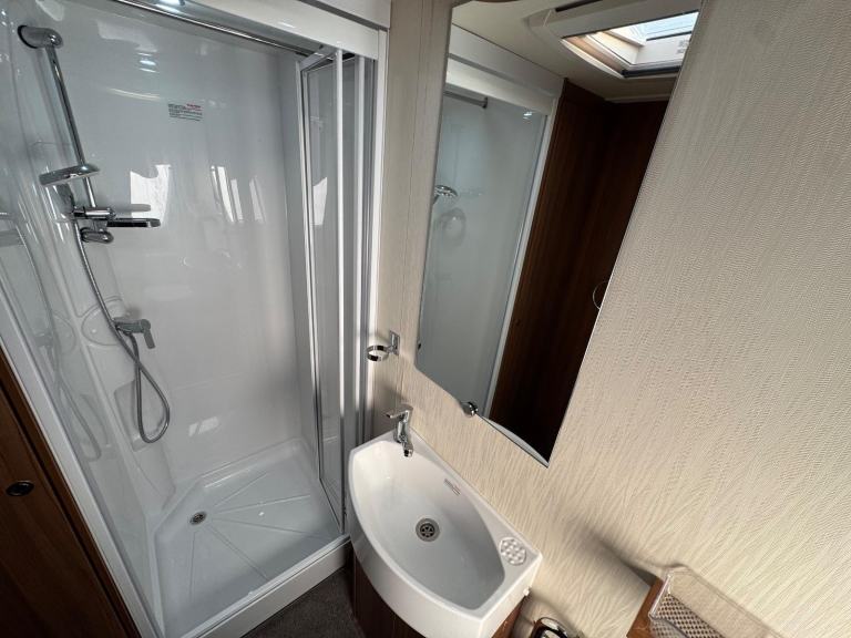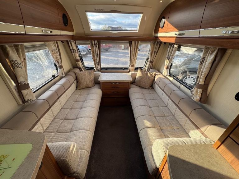 ELDDIS AFFINITY 530 / 4 BERTH - complete end dressing room incorporating separate shower cubicle, vanity unit and toilet - central offside extended dinette with retractable bunk - central nearside kitchen - 2 x singles / double at the front - this model offers top specification benefitting from ALDE central heating and very solid fittings - plenty of floor space and storage, as well as been extremely versatile - the dinette is extra wide to accommodate more comfort . SUPER EXAMPLE OF AN EVER POPULAR MODEL !