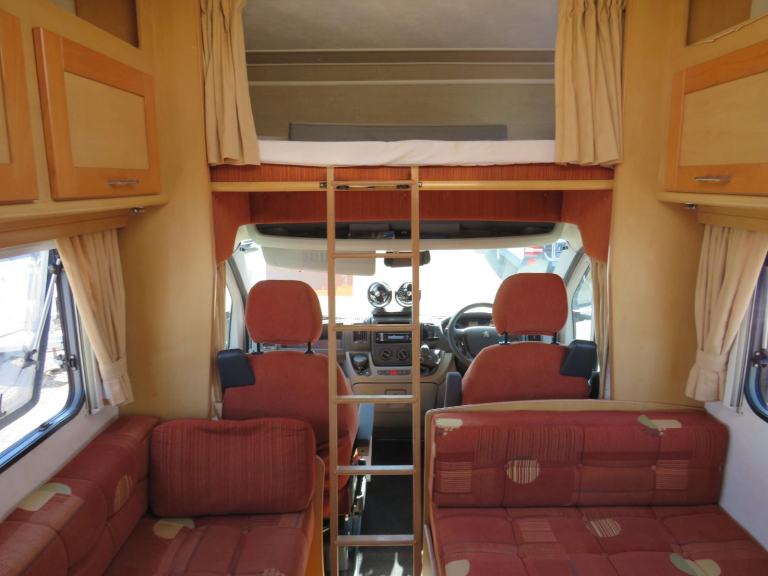 The Bedfordshire Car and Caravan Centre is delighted to present this 5 Berth layout from Elddis. With a double overhead cab, double dinette and bench seat, this motorhome will carry 4 passengers with seatbelts and sleep 4 comfortably. Cleverly designed, the sleeping arrangements convert to a 4 seat dining area with large wet room/shower, washbasin and cassette toilet. The kitchen comes with a 3 ring gas hob, oven, grill, washing up sink and 3 way fridge. Storage is plentiful both at floor level and eye level.