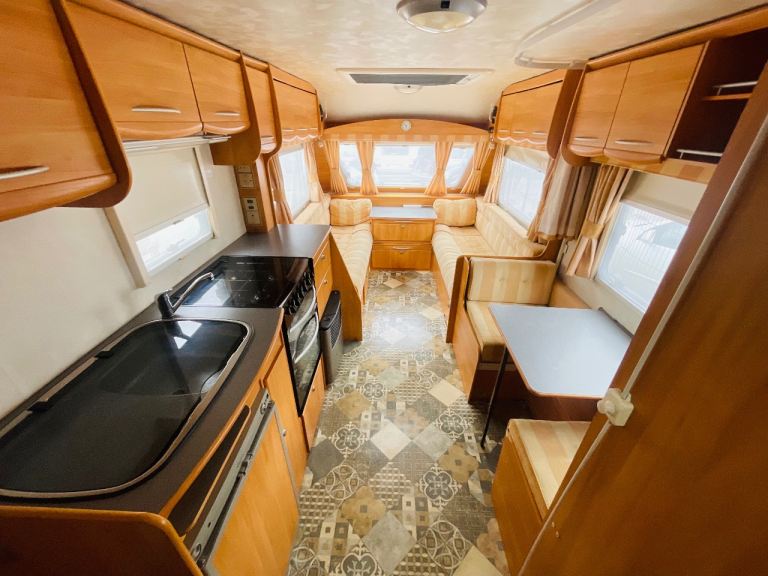Safety Belt Pretensioners; TV; Vehicle Independently Inspected; Passenger Airbag; TV Aerial; Central Heating; CD Player; End Kitchen; Blinds; Double Glazing; 240V Lighting; Driver Airbag; Sunroof; Full Service History; Cooker; Back Seat Safety Belts; External Side Lockers; 12V Lighting; V5 Registration Document; Grill; Awning; Mains Hookup; Sink; Oven; AM/FM Stereo; Hand Washbasin